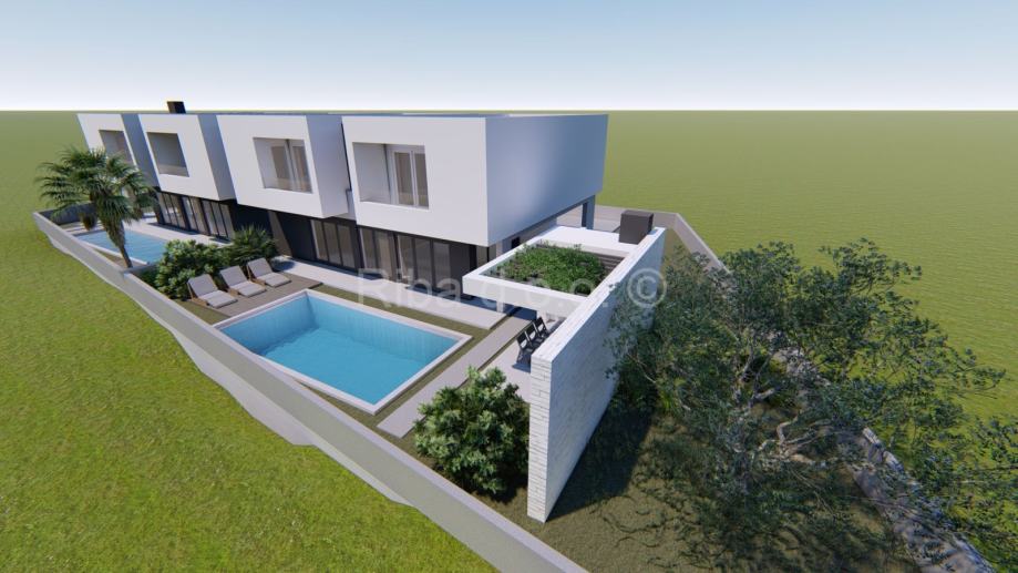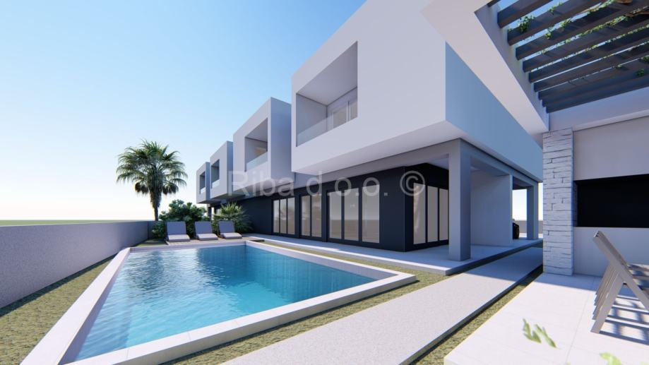 Ljetna kuhinja smještena pod pergolom zaokružuje cjelokupni doživljaj ove nekretnine, stvarajući savršen prostor za druženja i uživanje na otvorenom.