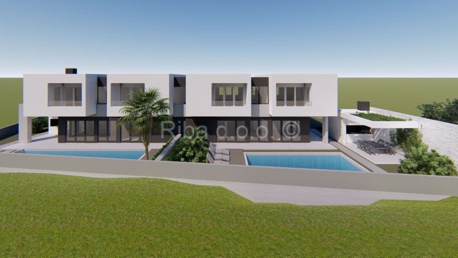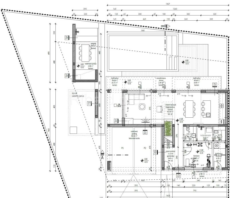 U prizemlju ove impresivne nekretnine smješten je prostran i iznimno svijetao dnevni boravak koji odiše elegancijom i udobnošću,te kuhinja i blagovaonica. Poseban ugođaj pruža sauna, te teretana s vlastitom kupaonicom, osiguravajući maksimalnu praktičnost. Dodatni gostinjski WC i diskretno odvojena praonica dodatno doprinose svakodnevnoj udobnosti stanovanja.