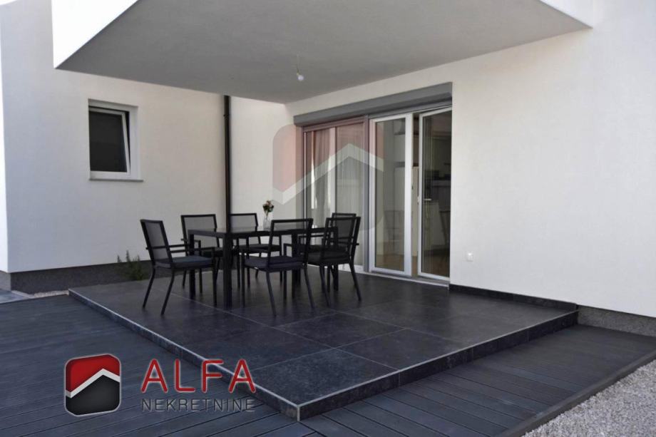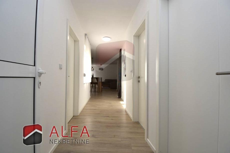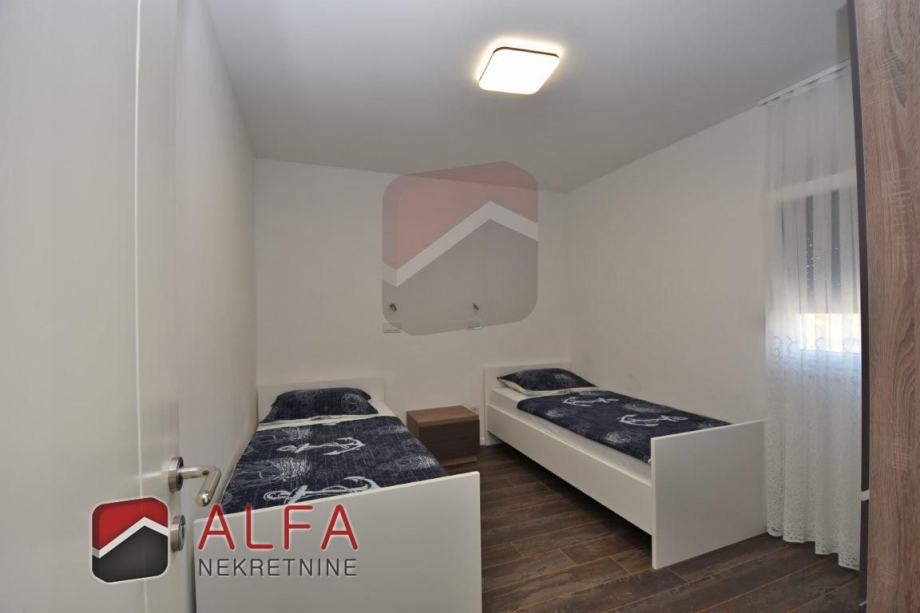 Ova obiteljska kuća na svakoj etaži ima jedan stan. Svaki stan se sastoji od hodnika, dvije spavaće sobe, kupaonice, kuhinje sa spojenom blagovaonicom i dnevnim boravkom, te lijepe prostrane natkrivene terase. Stanovi su odvojeni unutarnjim stepeništem.