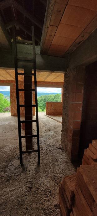 Kuca u Hrvatskoj Kostajnici 150 m2 nove gradnje, građevinska, monofazna i trofazna struja, voda. Ukupna povrsina parcele 950m2