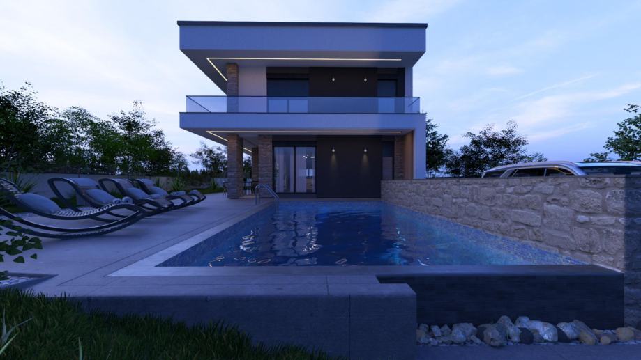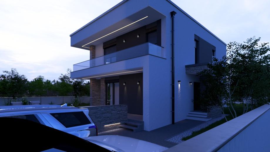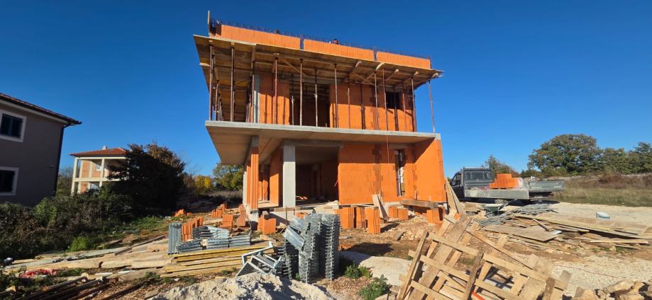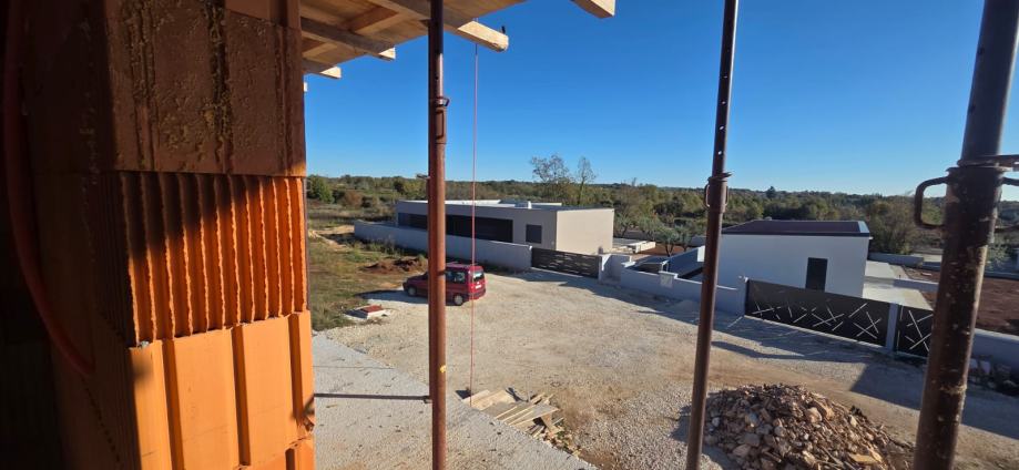 Na prodaju je moderna kuća u izgradnji, smještena u mirnom dijelu Kanfanara, idealna za obiteljski život ili investiciju u turistički najam.