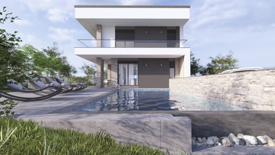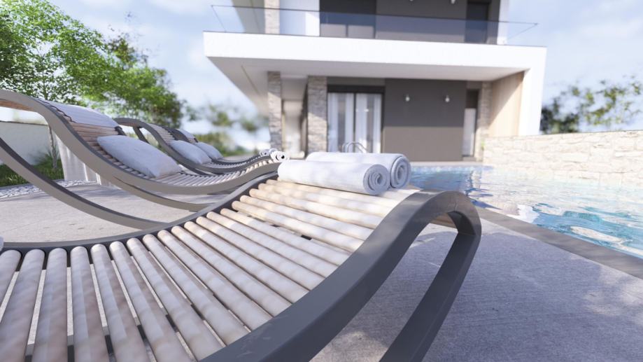 Kuća je projektirana s naglaskom na udobnost i privatnost. Svaka spavaća soba ima vlastitu kupaonicu i izlaz na terasu, što pruža maksimalnu komociju i osjećaj luksuza.