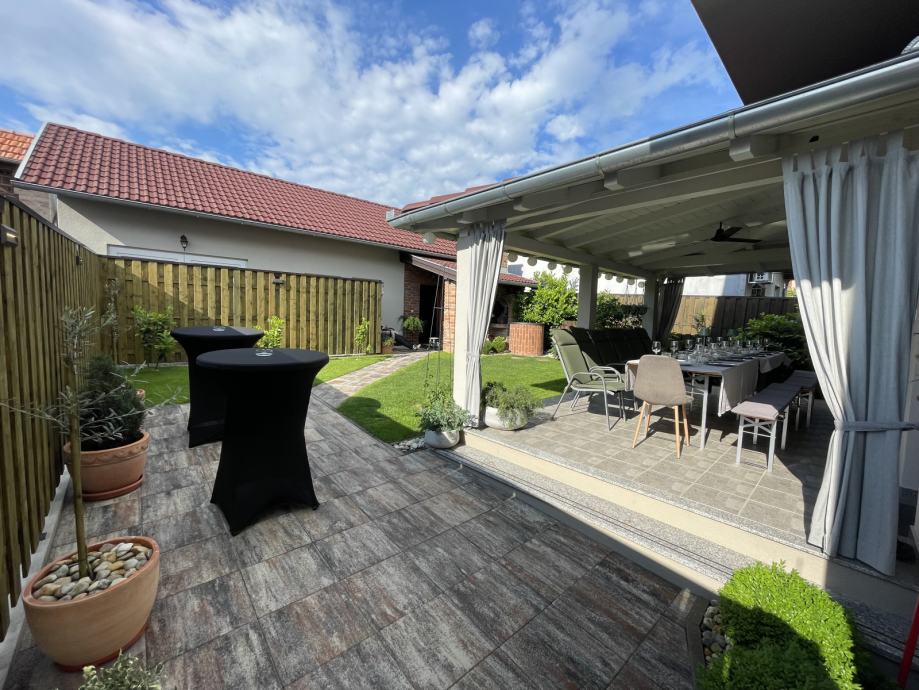 Na čestici se također nalazi pomoćna građevina sa tri prostorije, te nadstrešnice sa uzidanim roštiljom. U nastavku je zelena površina do koje je pozicionirana terasa. U sklopu dvorišta nalazi se i zidani bunar.