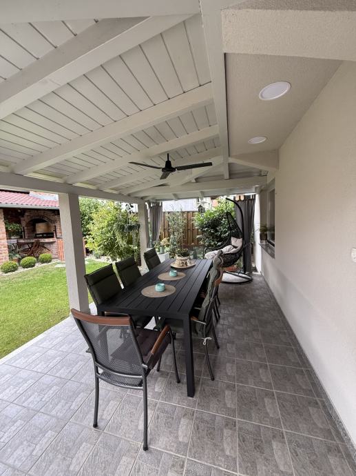 Kuća je visoka prizemnica no posjeduje dva odvojena ulaza(DUPLEX), te je takva i etažirana u dva stambena prostora. Svaki stambeni prostor ima odvojene režijske troškove.