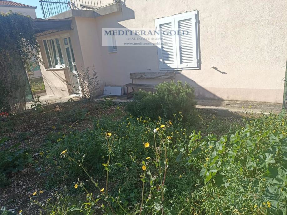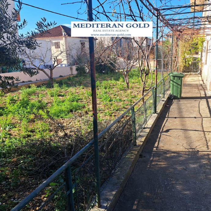 Trogir, Seget Donji, prodaje se dvojna kuća na dvije etaže. Sastoji se od prizemlja: kuhinja,dnevni boravak, blagavaonica, kupaonica i hodnik ukupne površine od 54,77 m2, na prvom katu su tri sobe, predsoblje, unutarnje stubište, ukupne površine od 50,83 m2 sa pripadajućim sporednim dijelovima i to na prvom katu: lođa-ukupne površine od 9,87 m2, ravni krov površine od 62,46 m2, te pomoćne zgrade i to: 2 ostave i ljetna kuhinja-ukupne površine od 47,68 m2 (ukupno 178m2) i vrta od 451,00 m2. Od mora udaljeno 350m. Ova kuća nudi neograničene mogućnosti preuređenja u vikendicu, obiteljsku kuću ili kao turistički objekt. Agencija naplaćuje proviziju.