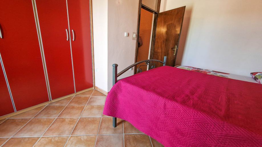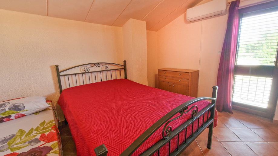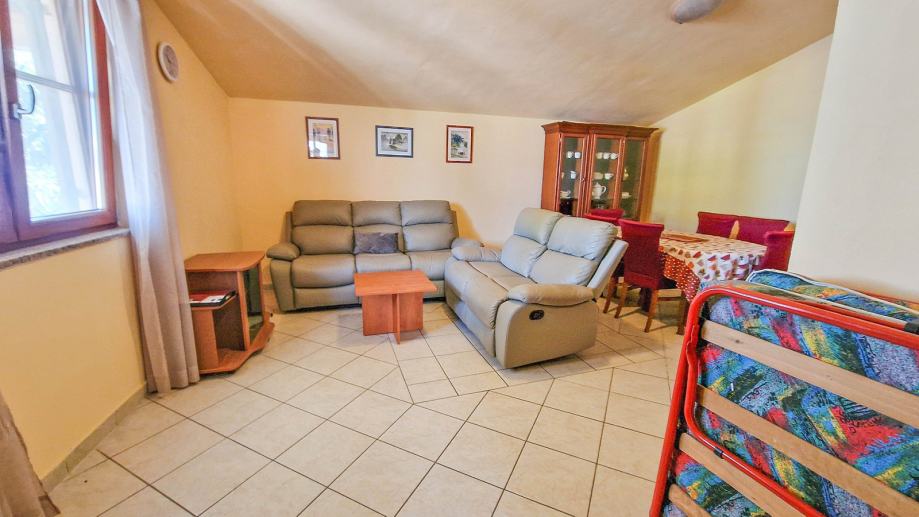 Prodaje se dvojna kuća stambene površine 90 m² u okolici Pule. U prizemlju se nalazi dnevni boravak s blagovaonicom, kuhinja, jedna soba, kupaonica, hodnik i ostava. Na među katu je galerija koja može biti radna soba. Na prvom katu je spavaća soba s balkonom od 2,5 m² i kupaonica.