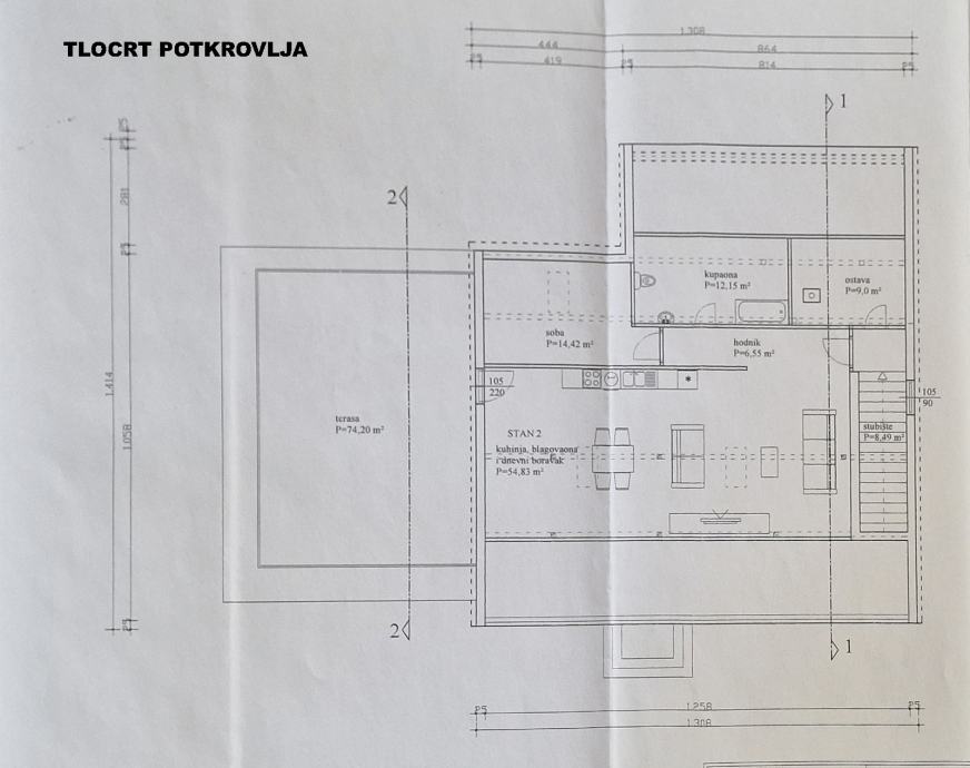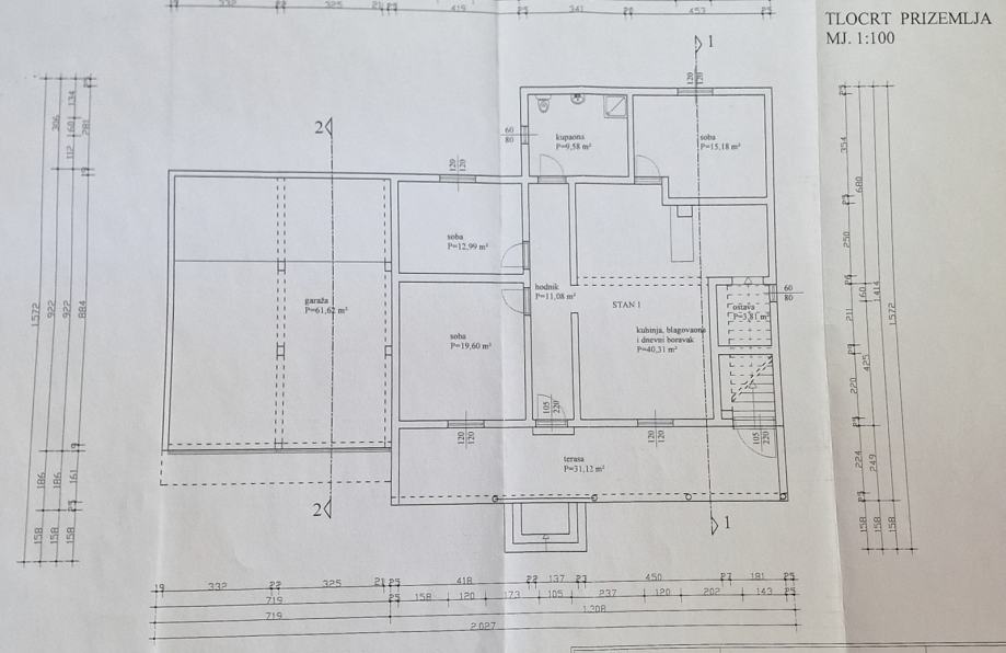 Kuća površine cca 326 m2 ima dvije stambene jedinice raspoređene u prizemlju i potkrovlju objekta.