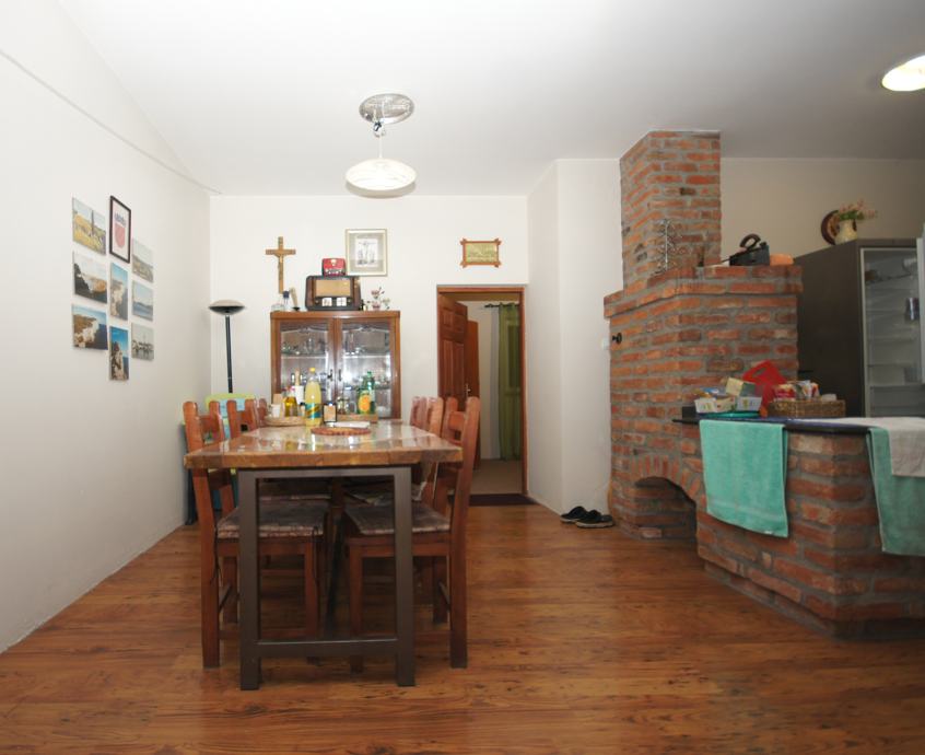 U prizemlju se nalazi četverosoban stan koji se sastoji od 3 spavaće sobe, open space prostora (u kojem je kuhinja, blagovaona i boravak), kupaonice, hodnika, terase i velike garaže.
