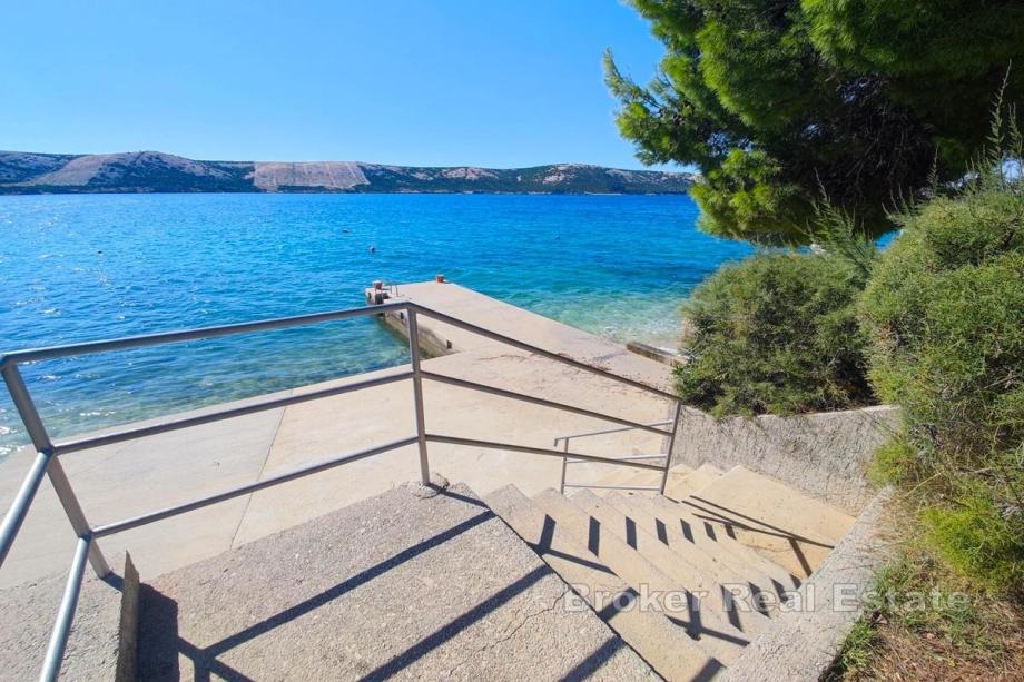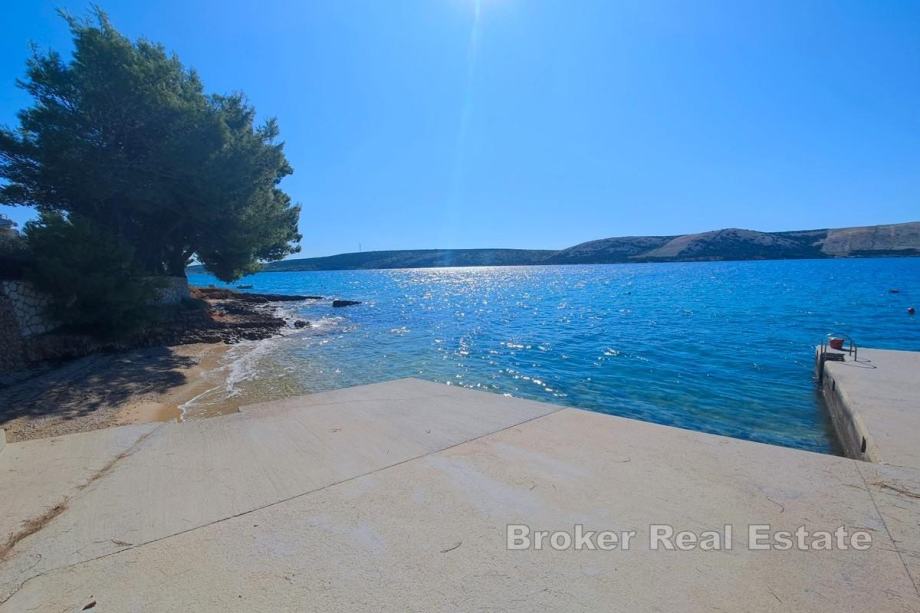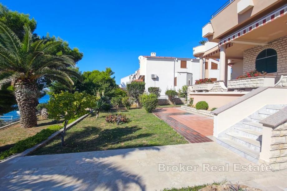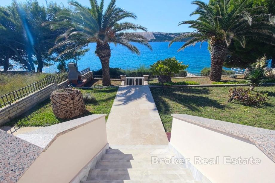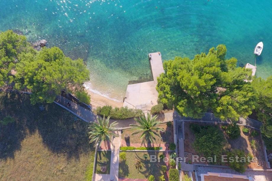 Uređena okućnica s mediteranskim biljem i palmama pruža poseban doživljaj boravka, s izravnim pristupom do mora i plaže. Na plaži je izgrađen veliki betonski mul s 3 veza za brod, dostupan budućem vlasniku.