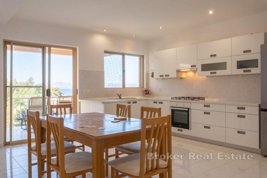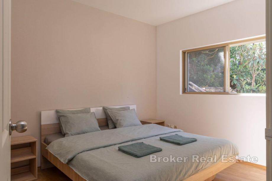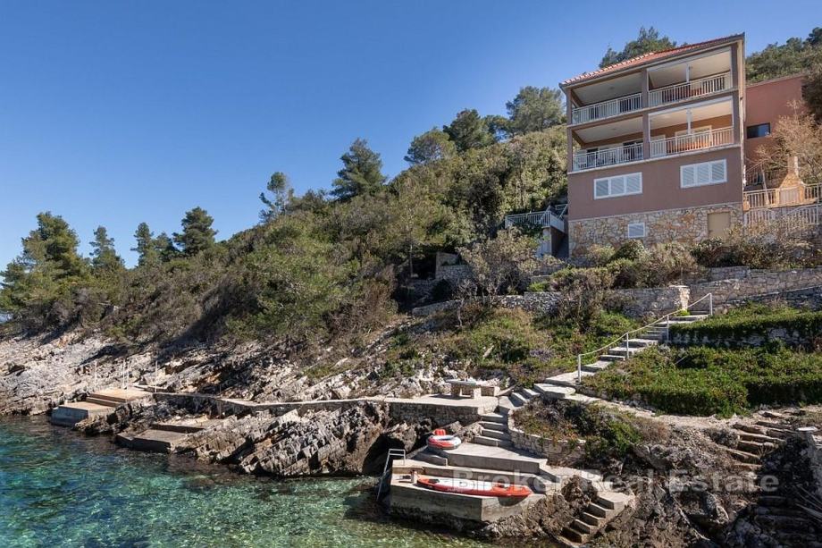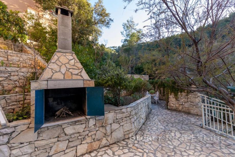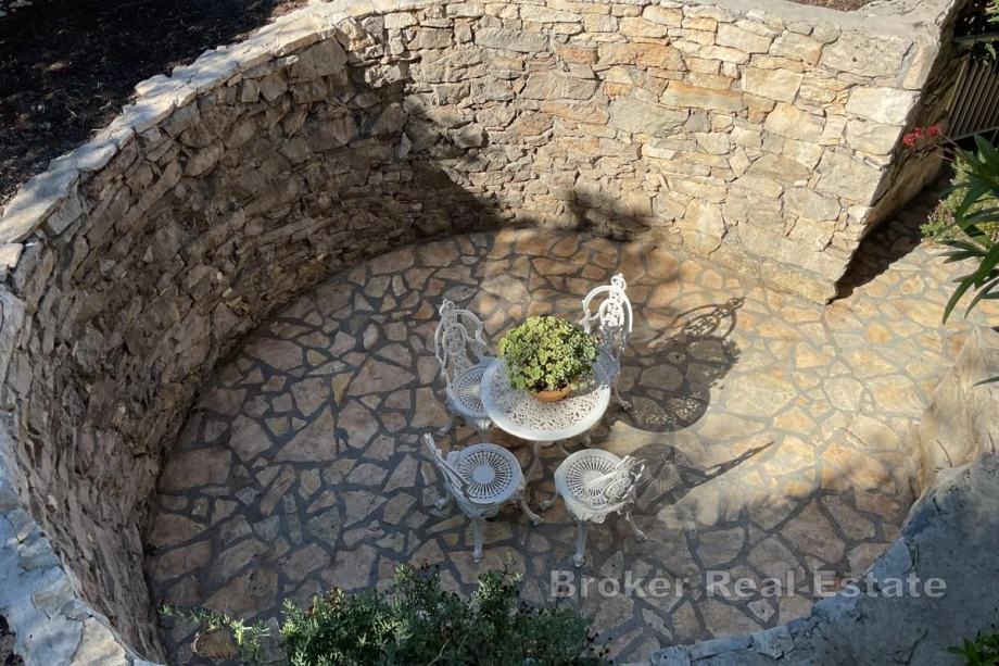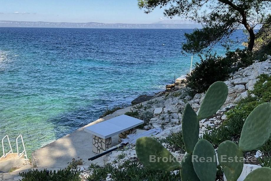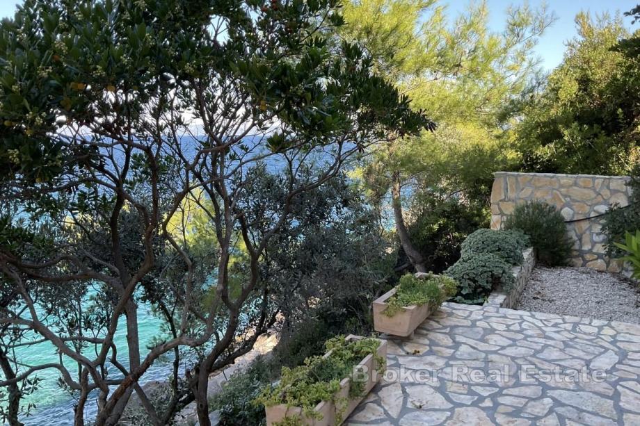 More je udaljeno svega nekoliko koraka, pristup je moguć stepenicama na plažu, a ispred kuće nalazi se mali mol na kojem se može vezati brod. Tu je i kameni plato za sunčanje, dok se na terasama mogu zatvoriti stijene koje pružaju zaklon od sunca i vjetra. Postoji i mogućnost izgradnje bazena, što bi dodatno zaokružilo doživljaj mediteranskog luksuza.