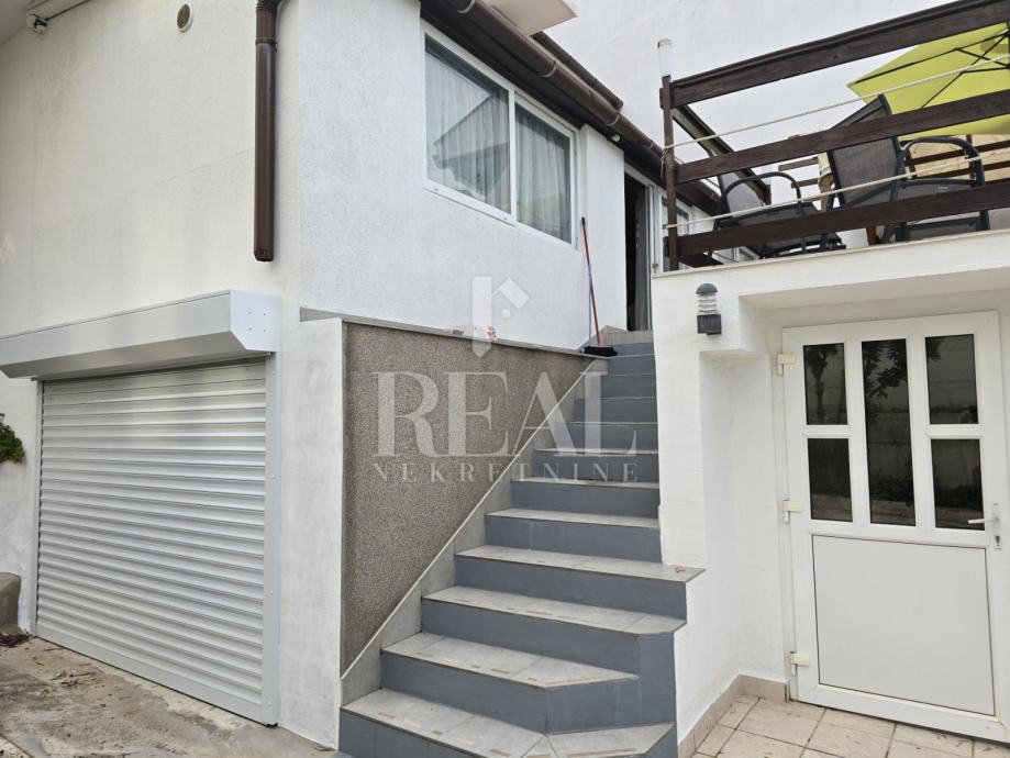 – U prizemlju se nalazi garaža od cca 80m2, gdje dio prostora služi kao ostava. Na ovoj etaži ima i dodatna prostorija s pogledom na more, nekad ljetna kuhinja a danas prostor pretvoren u mini teretanu odnosno prostor za rekreaciju i zabavu.