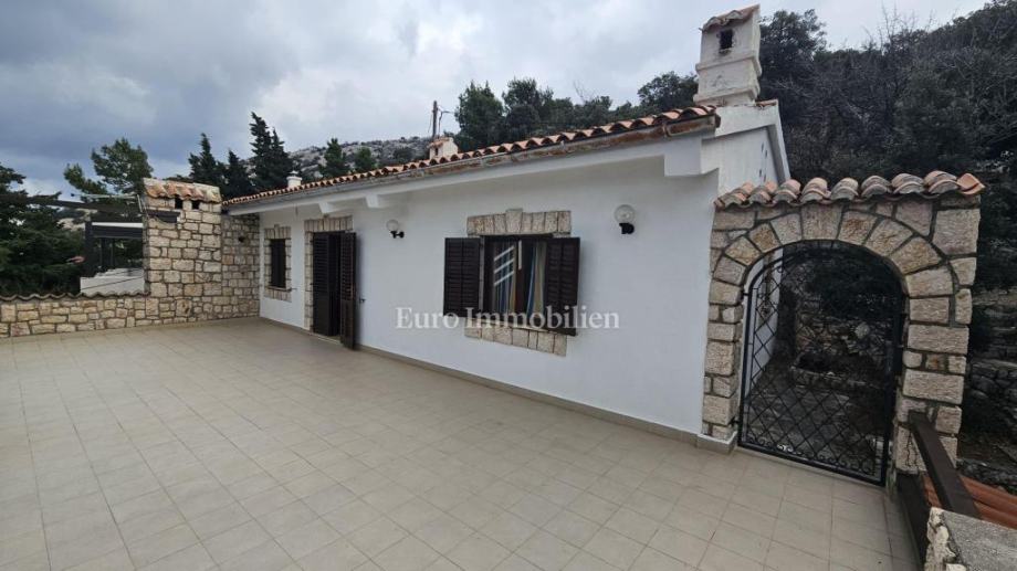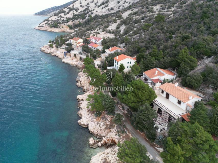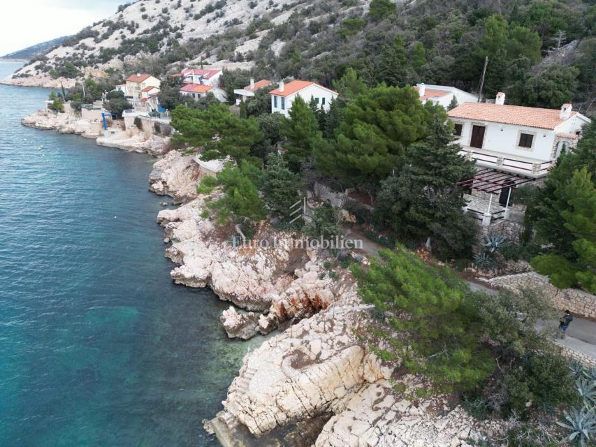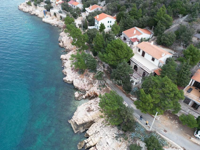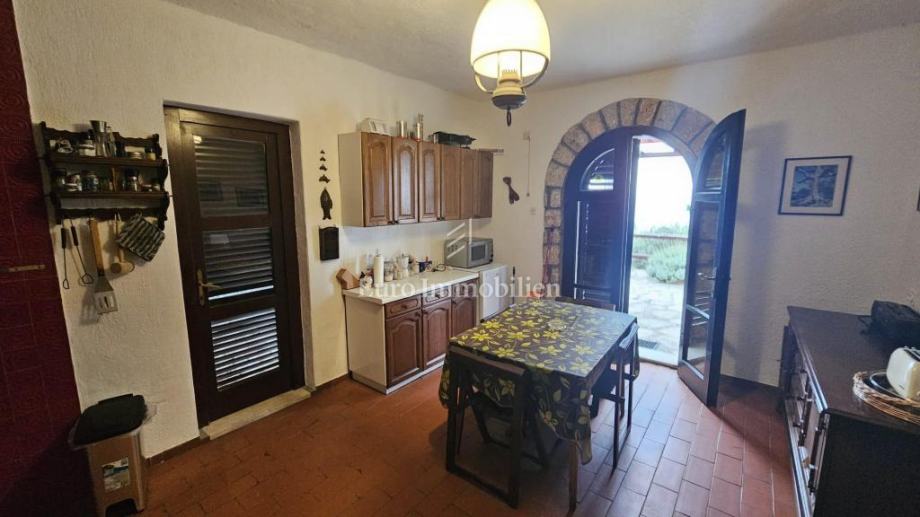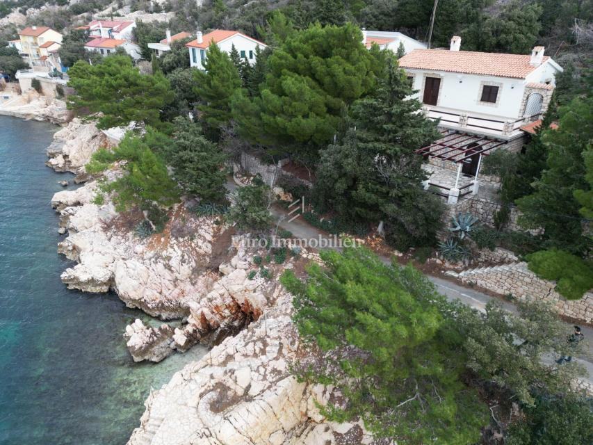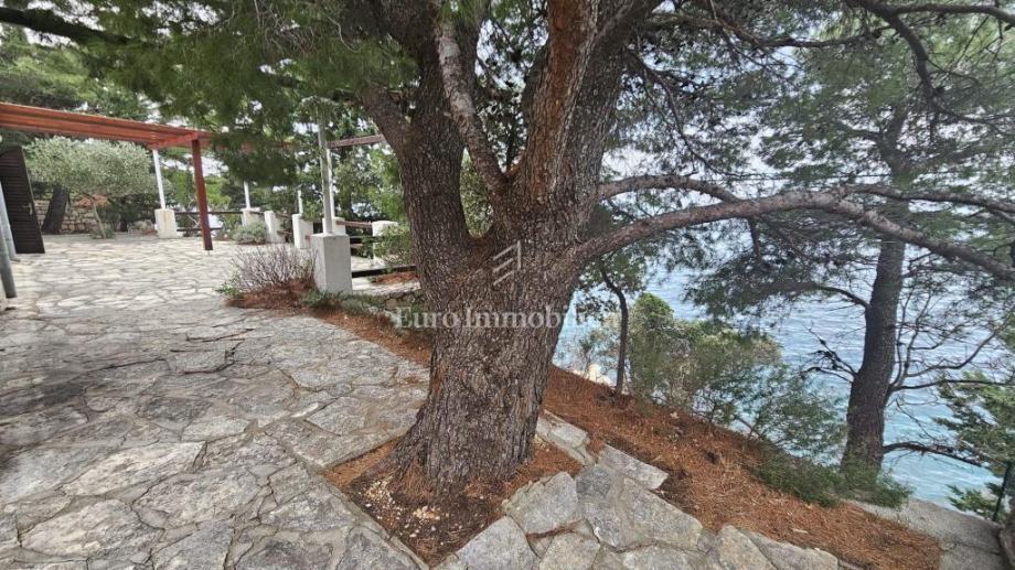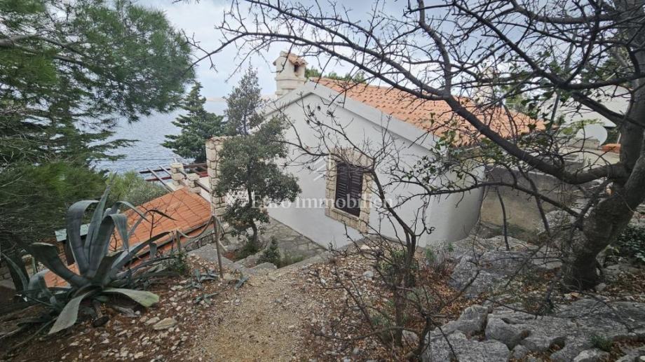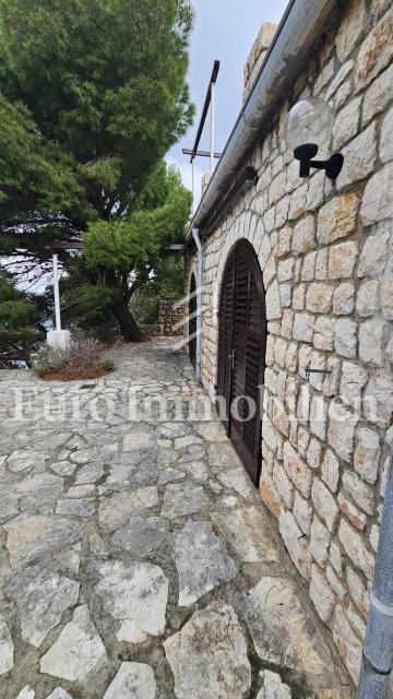 Okućnica je ograđena dok je ispred kuće vez za barku i prilaz plaži.