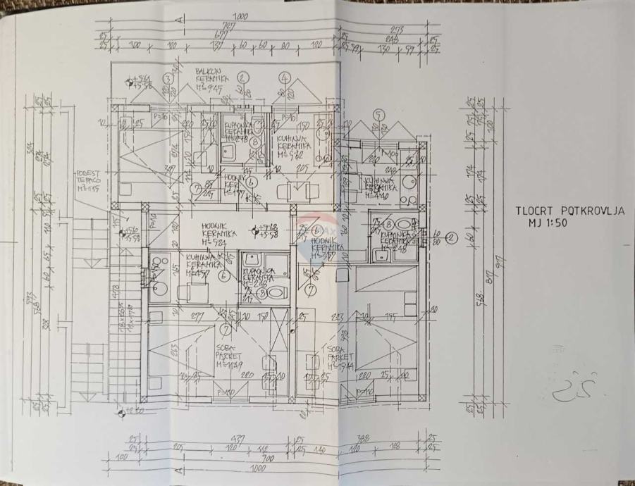 U visokom potkrovlju se nalazi zajednički hodnik iz kojeg se ulazi u 3 jednosobna stana koji se sastoje od hodnika, kuhinje s blagavaonicom, spavaće sobe i kupaonice s wc-om.