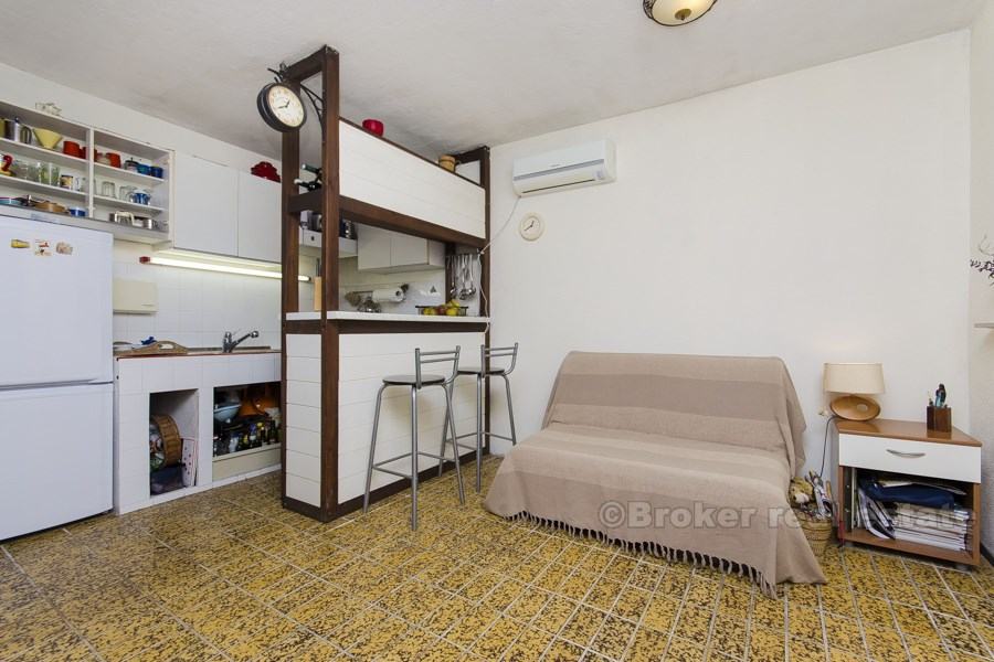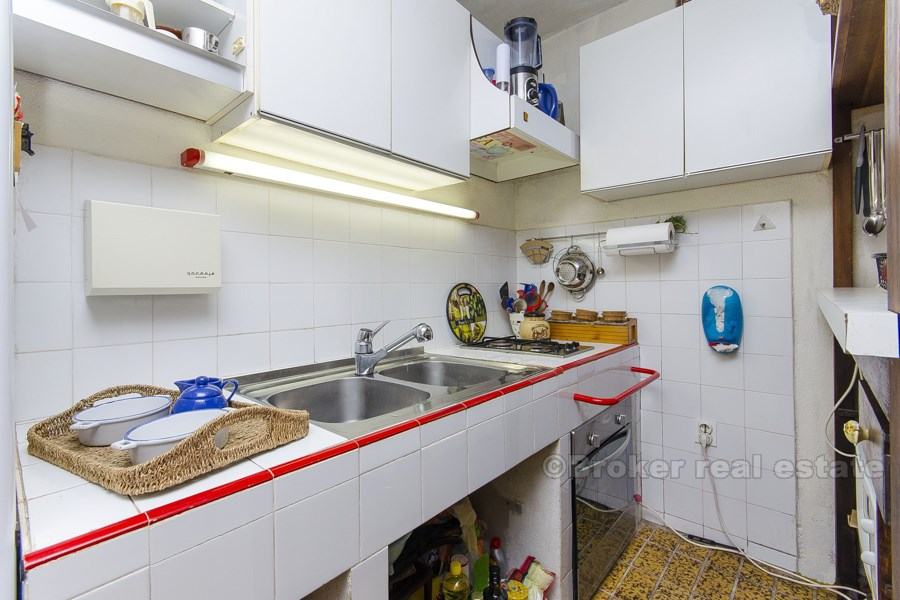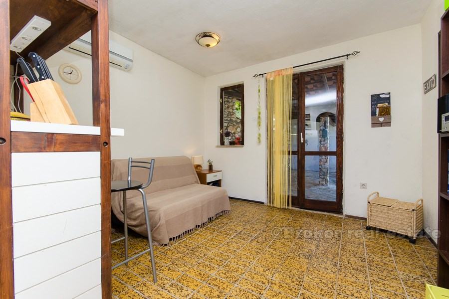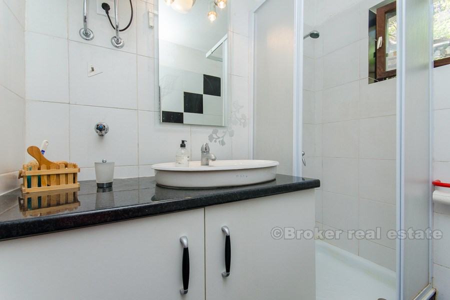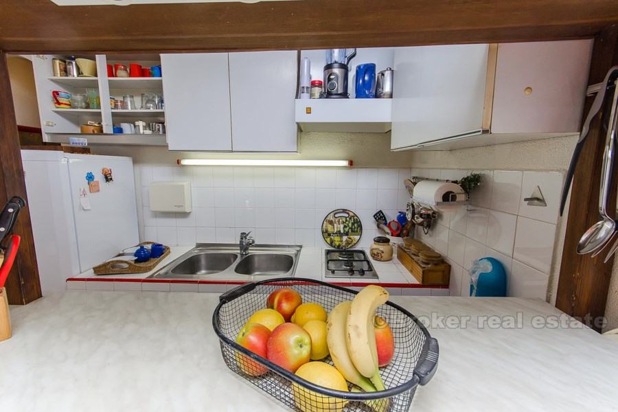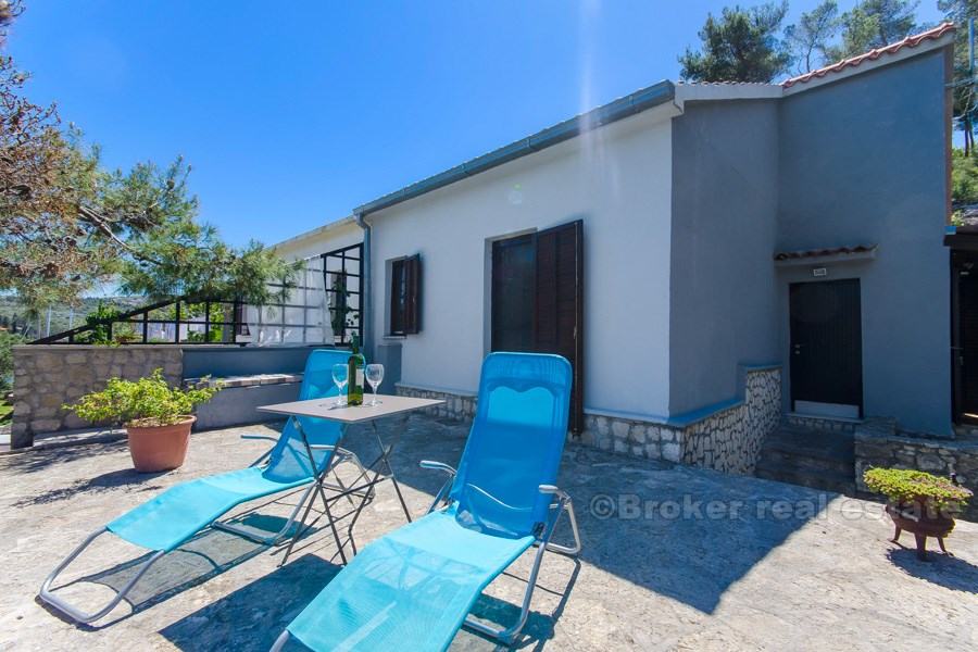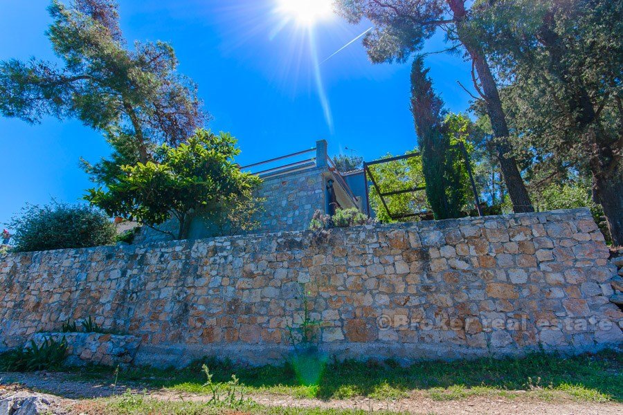 It was built on 730 m2, stretches over two floors with a total of 97 m2 of living space . It consists of 3 bedrooms, living room, kitchen and two bathrooms. Spacious terrace offers a fantastic panoramic sea view where you can enjoy breath taking sunset.