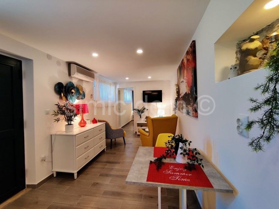 Posredujemo u prodaji prelijepe, šarmantne kuće smještene u prvom redu do mora u malom i mirnom mjestu Vinišće. More je udaljeno tek 10m od kuće te se na istom mjestu nalazi plaža i privatni vez za brod koji je u kompleksu same kuće dok je plaža ispred veza za brod također dostupna za korištenje. Kuća ima dva odvojena apartmana jedan od 30-ak kvadrata i drugi od oko 85m2. Svaki apartman je na svojoj zasebnoj etaži te sadrže odvojene velike roštilje, vanjski prostor sa stolovima i foteljama koji su natkriveni. Manji apartman u prizemlju sastoji se od kuhinje sa dnevnom dijelom, kupaonice i spavaće sobe te ima veliki dvor pun zelenila i vanjski tuš kao i već navedeni roštilj i natkriveni prostor s velikim fiksiranim drvenim stolom. Gornji veći apartman sastoji se od dvije spavaće sobe, kupaonice, wc-a, ostave te ima veliki dnevni boravak s mramornim podom, prekrasnim pogledom na more kao i visoke stropove, a u sklopu dnevnog boravka postoji i veliki unutrašnji kamin. Tu je i velika terasu koja je natkrivena i s prekrasnim pogledom na more i cijelo mjesto. Parcela na kojoj se kuća nalazi je oko 670m2 i ima veliki potencijal za dodatne nadogradnje poput ugradnje bazena, jacuzzi i sl.. Prednost ove nekretnine je izvršena adaptacija i renovacija 2022. godine. Sveukupno postoje 3 parkirna mjesta za automobile od čega je jedno parkirno mjesto odvojeno u sklopu garaže. Vlasništvo uredno.