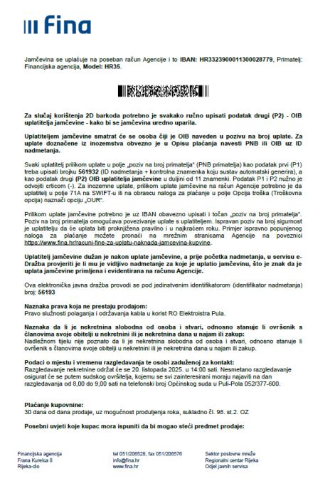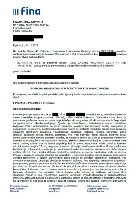 Predmet prodaje je nekretnina koja se nalazi u ulici Dolinka u Puli.