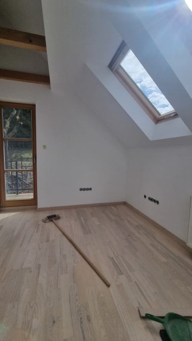 Na katu se nalaze dvije spavaće sobe i svaka ima izlaz na balkon.