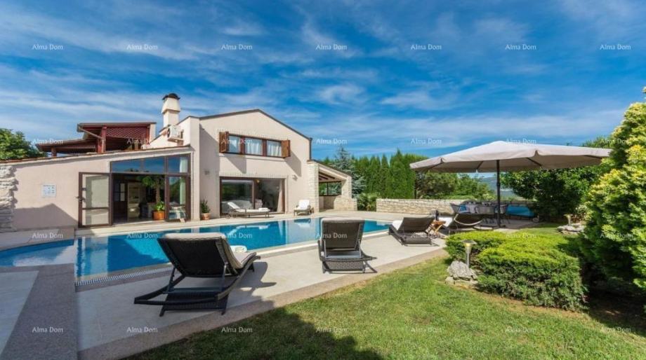 Kamenim stepenicama se prilazi kući i na grijani bazen koji je površine 50 m2, pored bazena se nalazi zidani kamin, zatim, vanjski prostor za druženje u produžetku je sauna.