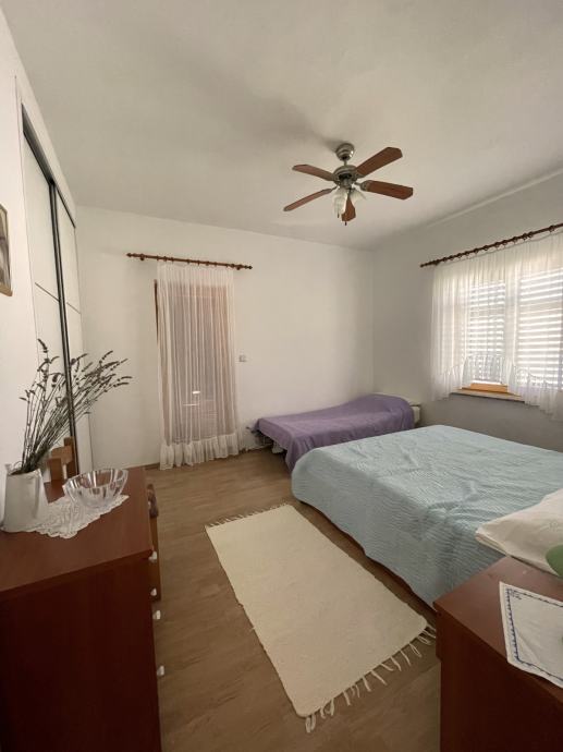 Unutar kuće, kuhinja je opremljena svim bitnim elementima i spojena s dnevnim boravkom. Tome su pridružene dvije spavaće sobe od kojih svaka ima svoj ugradbeni ormar a glavna spavaća ima i vlastiti manji balkon koji gleda na jug.