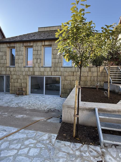 Kuća na dvije etaže povezana liftom. Dva odvojena stana koja mogu biti kao jedna cijelina. Drvena šindra na fasadi, krovno staklo 3.4x1.8m, podno grijanje, dizalica topline, kompletno namještena kuća. Štokani beton, betonska ograda, Bazen 3.5x7.5m, kompletno uređeno dvorište.