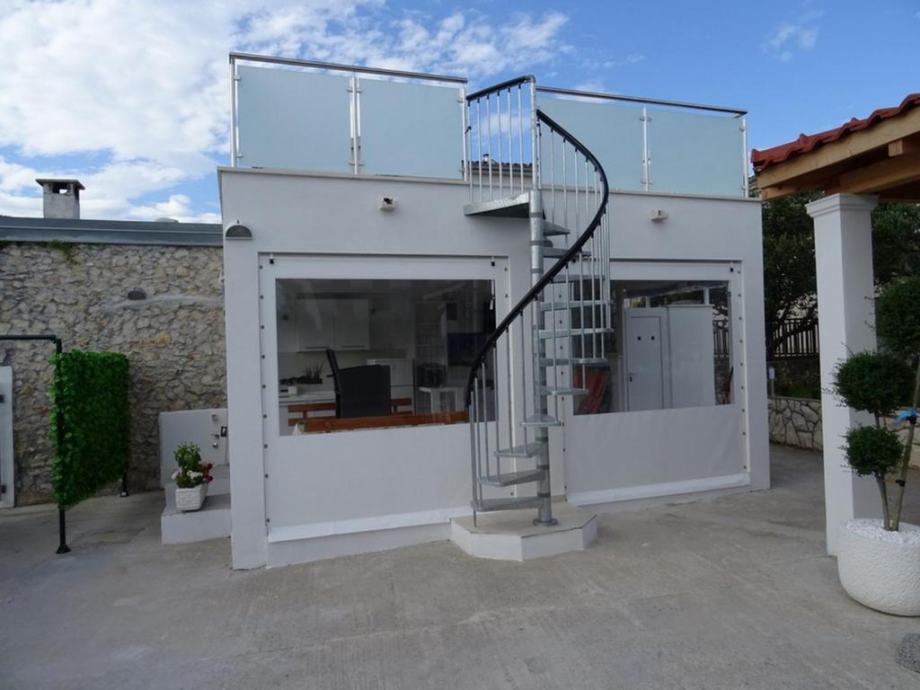 Kat kuće sastoji se od dvije spavaće sobe, dnevnog boravka s kuhinjom i blagovaonicom, kupatila i tri natkrivene terase.