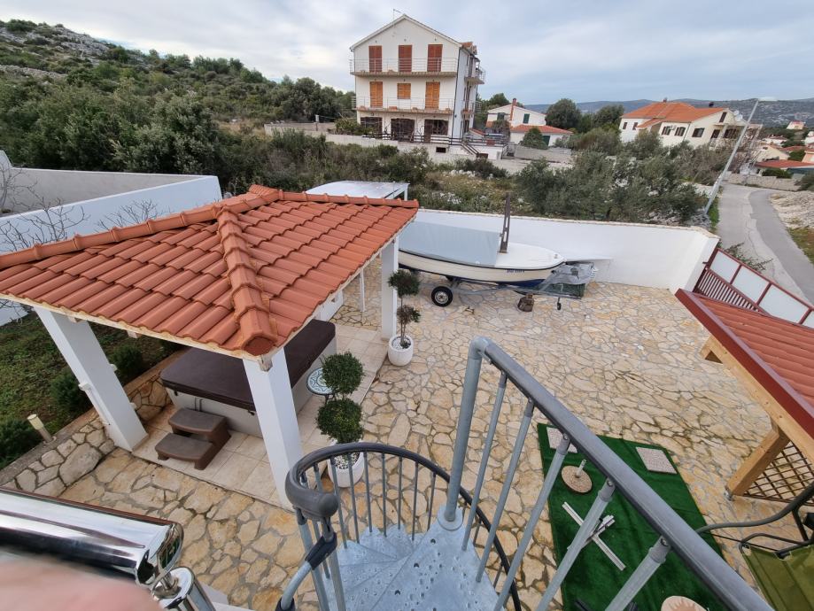 Kuća je smještena na parceli od 524 m2 i proteže se na dvije etaže (prizemlje i kat). Na parceli se uz kuću nalaze i konoba, ljetna kuhinja s otvorenim sunčalištem, bazen, jacuzzi, 3 roštilja, natkriveni parking za dva vozila te nenatkriveni parking za 4 vozila.