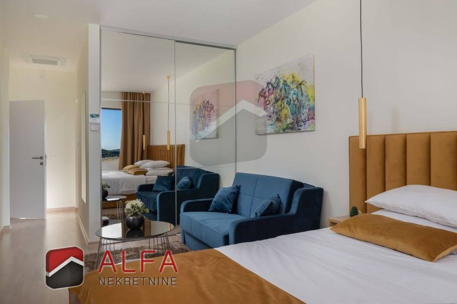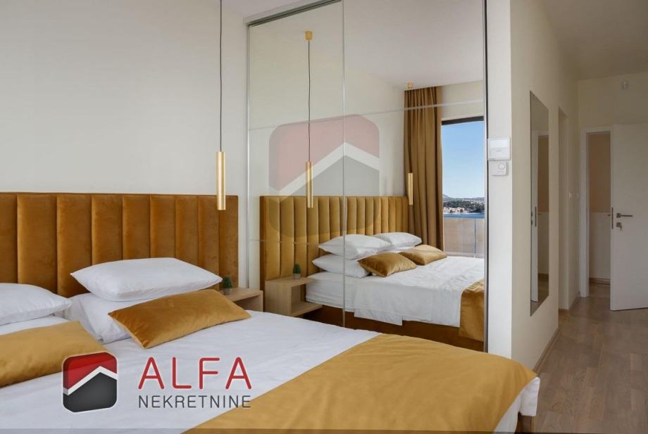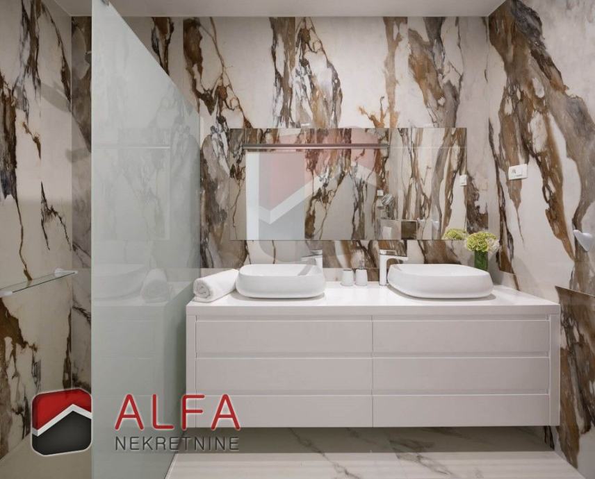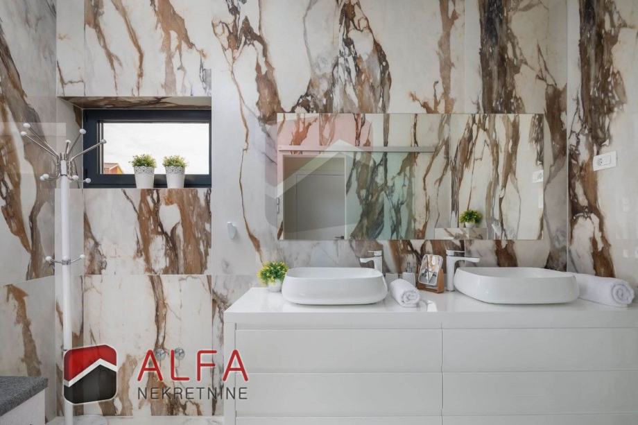 Ova iznimna nekretnina je vrhunski namještena modernim namještajem i opremljena svim aparatima te je spremna za useljenje.