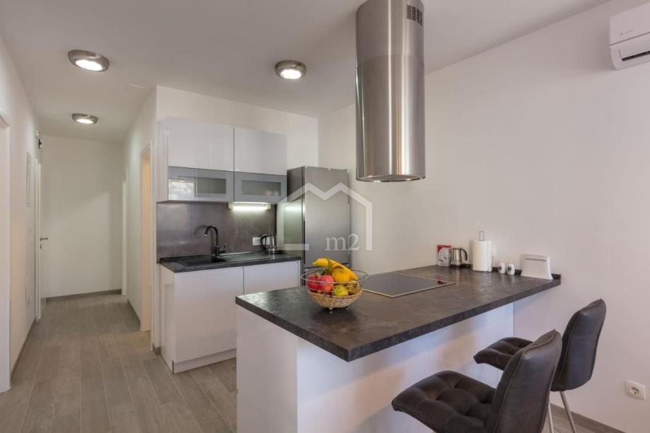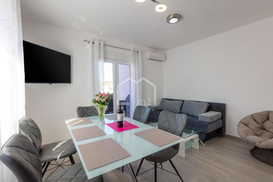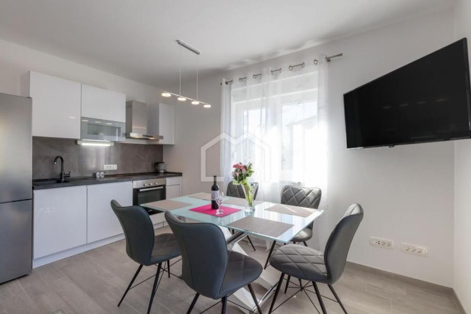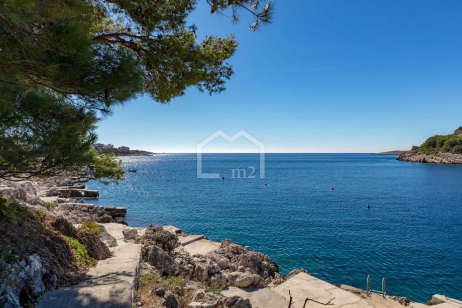 Posredujemo u prodaji kuće novogradnja u Uvali Stivašnica u Ražnju nedaleko od Rogoznice. Smještena je na parceli površine 858 m2, a kuća ima stambenu površinu od 389 m2. Sastoji se od suterena, prizemlja, prvog i drugog kata. Suteren kuće je završen i kompletno namješten. Prizemlje je također završeno i namješteno a sastoji se od dnevnog boravka, tri spavaće sobe, dvije kupaonice, malog wc-a, te natkrivene terase. Prvi kat je inkartan te ga treba završiti i namjestit. Na zadnjem drugom katu smješten je prostor od 40m2 gdje može biti studio apartman koji je samo inkartan te ga treba urediti i namjestiti i velika terasa na kojoj su postavljene pločice. Sa svake etaže možete uživati u pogledu na otvoreno more. Do kuće vodi cesta, a u sklopu parcele osigurana su i parking mjesta. Svi sadržaji potrebni za život nalaze se na svega par kilometara udaljenosti. Plaža se nalazi na svega 150 m od kuće, a aerodrom je udaljen 30 km.