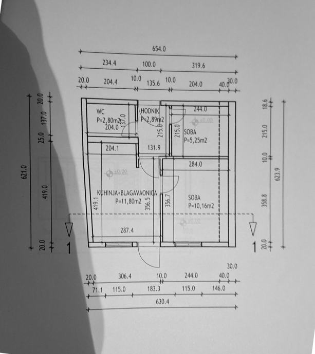 - prva jedinica 20m2 sastoji se od spavaće sobe, još jedne prostorije i kupaonice.