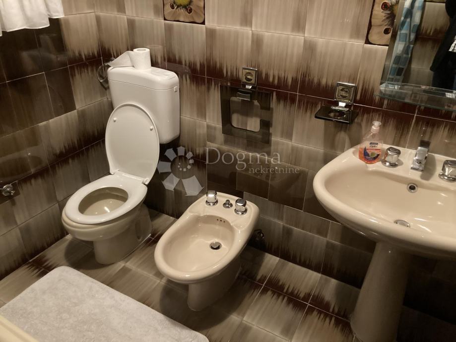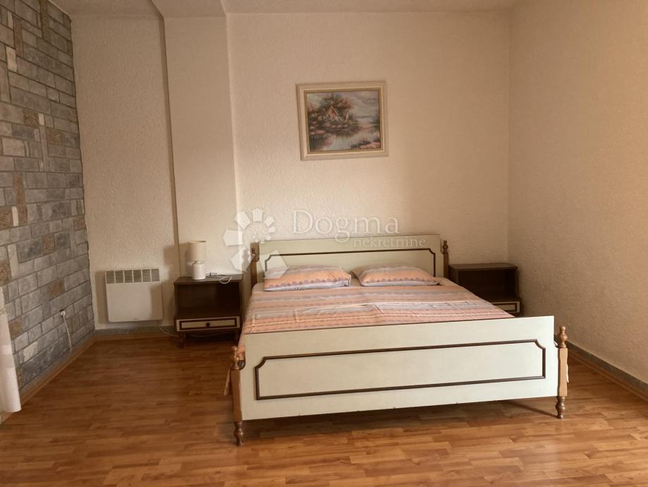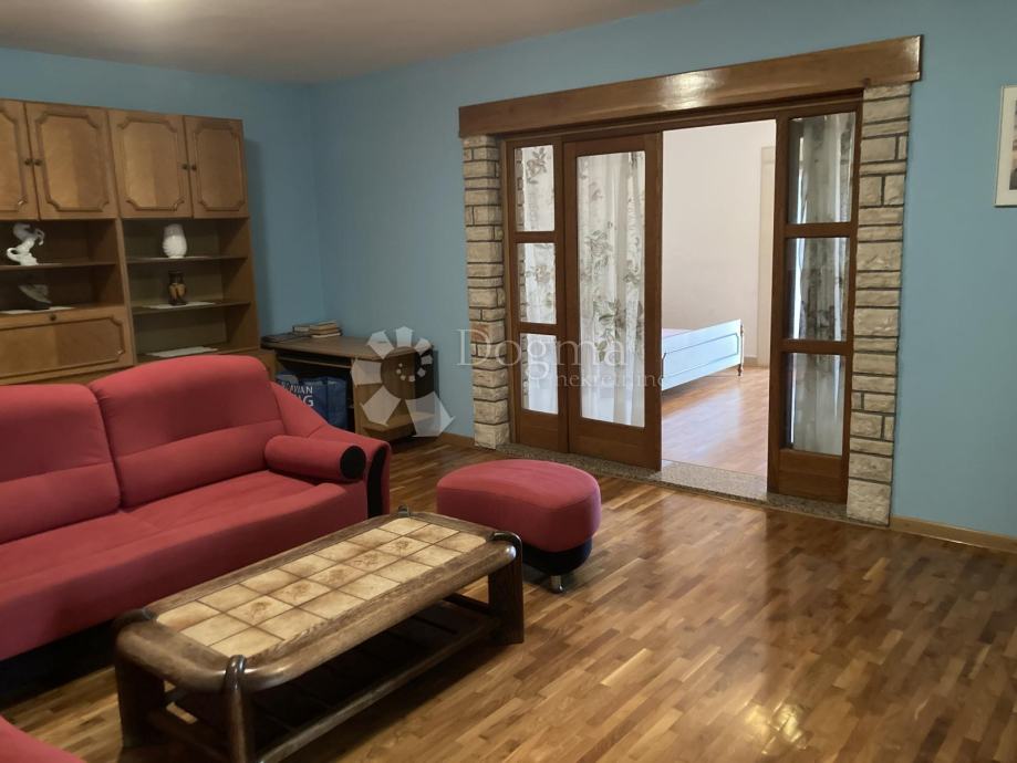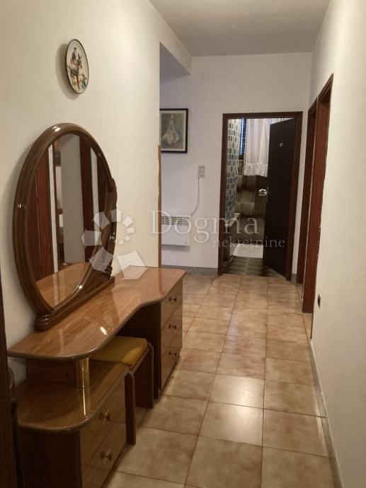 Na prvom katu kuće smješten je prostrani stan od 157 m² koji se sastoji od ulaznog hodnika, prostrane dnevne sobe, kuhinje sa blagovaonicom, 2 kupaonice, 4 spavaće sobe od kojih jedna ima izlaz na veliku terasu kao i dnevna soba sa kojeg puca predivan pogled na more. Ukoliko vlasnik ima želju, stan je moguće i podijeliti na više manjih stambenih jedinica za turizam ili privatne potrebe.