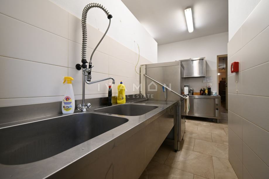 Restoran i kuhinja su potpuno namješteni i opremljeni, sa apsolutno cijelim inventarom. Nema potrebe za nikakvom dodatnom investicijom. U spremištu se nalazi i velika škrinja za skladištenje hrane.