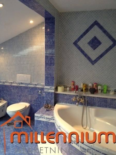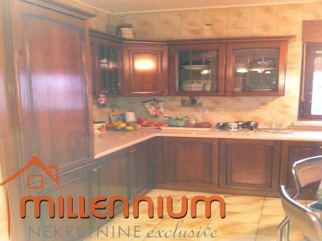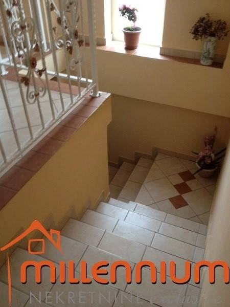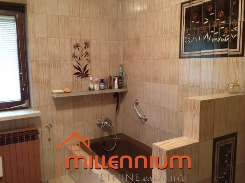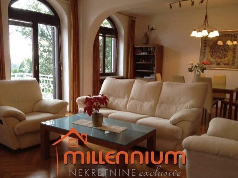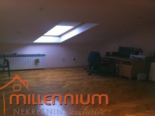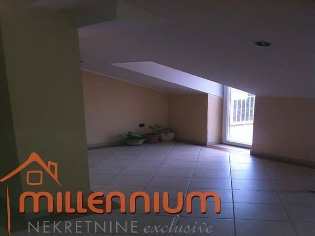 U prizemlju su na 45m2 garsonijera i podrum dok se na 1.katu i u visokom potkrovlju prostire dvoetažni 4-sobni stan s dnevnim boravkom, dvije kupaonice i toaletom. Vrlo je komforan s uzlazom na dva balkona na donjoj etaži i na veliku terasu na gornjoj etaži.