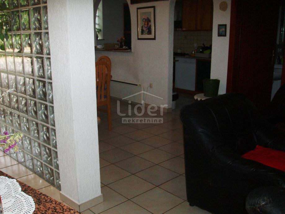 Samostojeća prizemnica na parceli od 300m2 (terasa 200m2 + vrt 100m2), u naravi stan koji je komforan i sastoji se od: kuhinje sa blagovaonom, 3 sobe, velikog dnevnog boravka i kupaone.