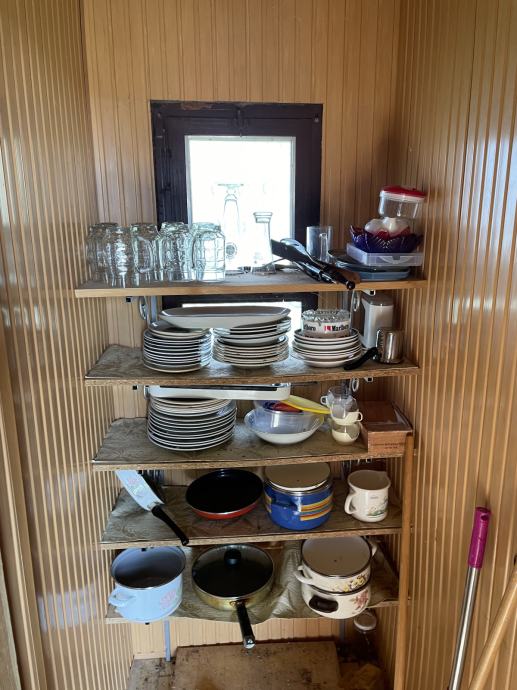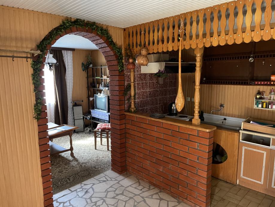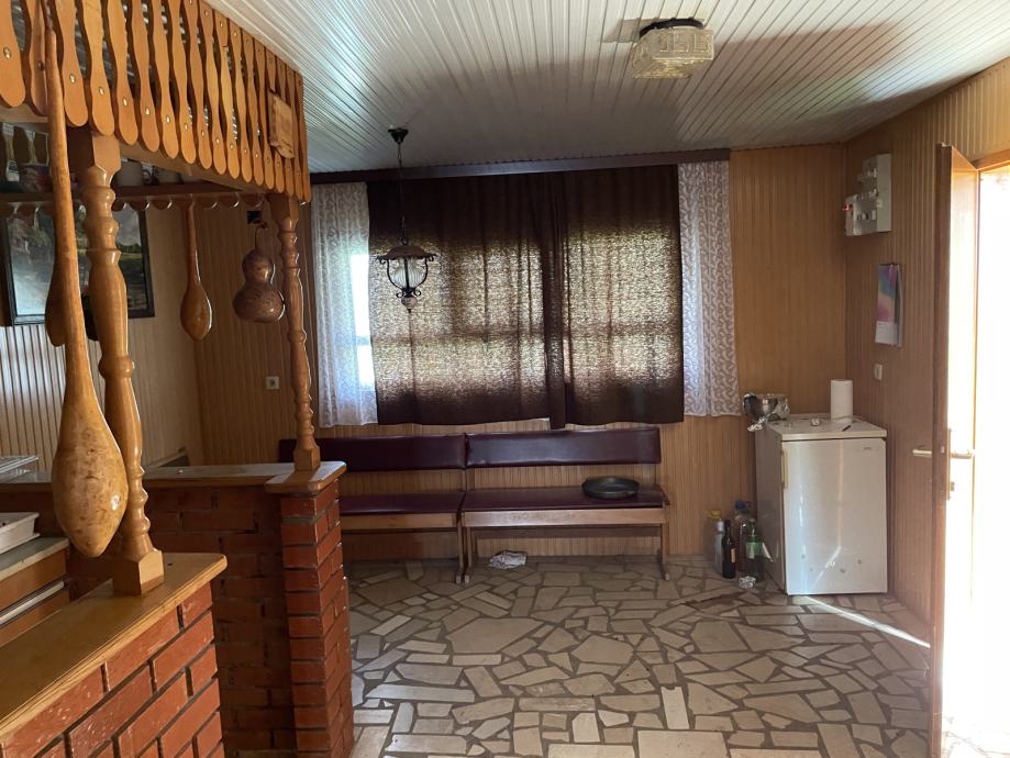 Tlocrtne dimenzije su 8 x 5,5 m2 neto korisne površine 46,49 m2 sa 2 etaže; prizemlje i podrum. Prizemlje se sastoji od ulaznog prostora, mini kuhinje, blagovaonice, dnevnog boravka. Ima priključak na struju. Pristup sa sjeverne strane asfaltiranom cestom.