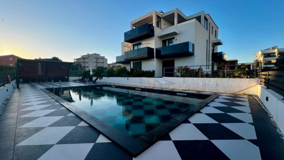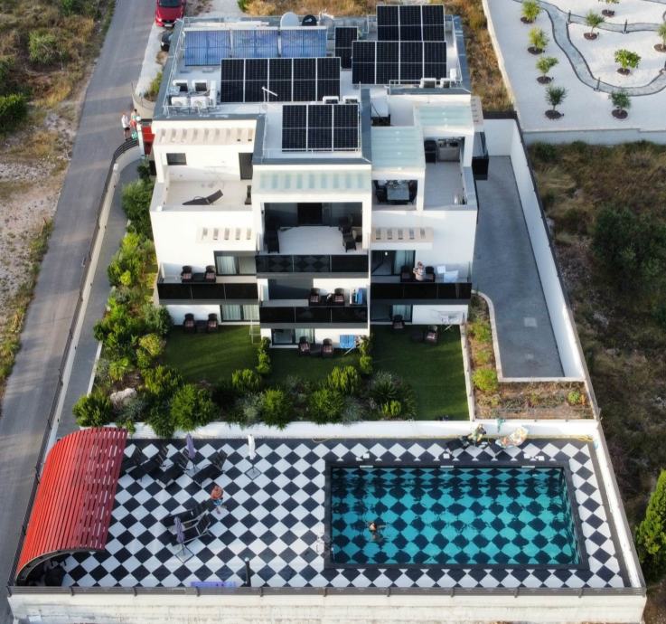 Luksuzna vila s velikim bazenom u Rogoznici 100m udaljena od mora, u naravi uhodani mali obiteljski hotel sa 9 potpuno opremljenih dvokrevetnih soba i penthousom na vrhu, kategorizirana sa 4*.