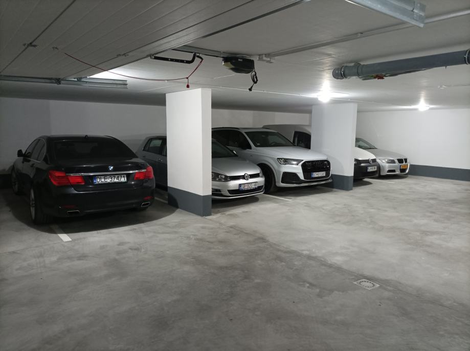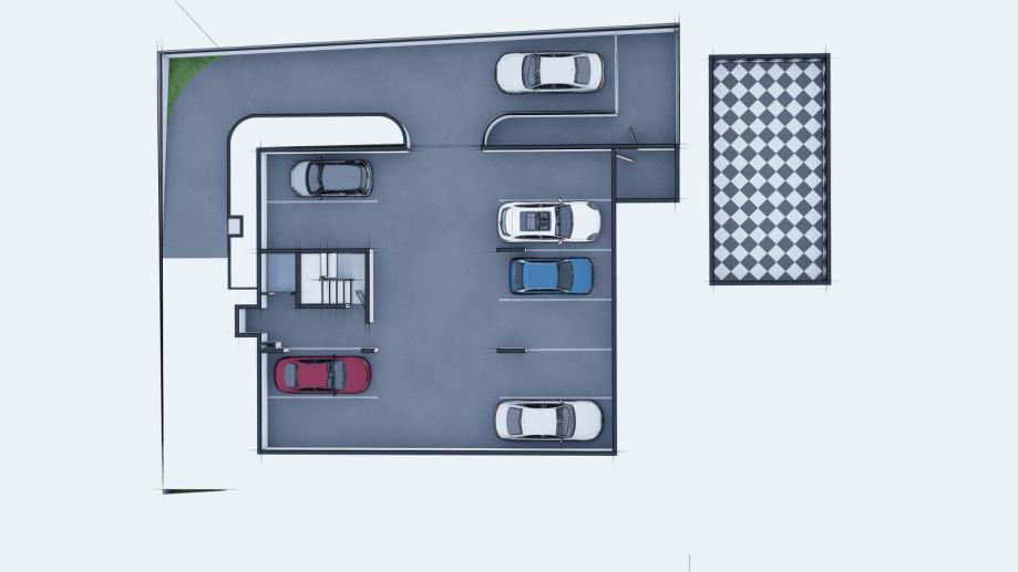 U podrumu je velika podzemna garaža sa 10 parkirnih mjesta + 1 vanjsko parkirno mjesto za veće kombi vozilo.