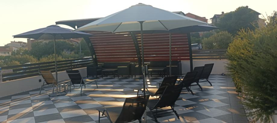 ad 5) Na vrhu objekta(3 kat - 5 etaža) se nalazi velika 125m2 otvorena krovna terasa sa prekrasnim 360° pogledom na more otoke i okolna brda, na kojoj je smještena solarna elektrana, solari za toplu vodu, 2XSAT TV, vanjske klima jedinice i dizalica topline 9 kW.