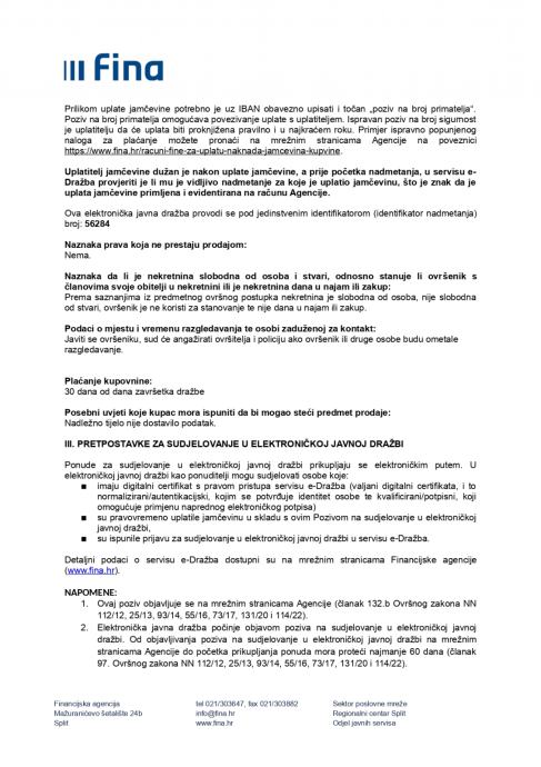 Druga elektronička javna dražba počinje 19.01.2026.g. u 15:00:00 sati.