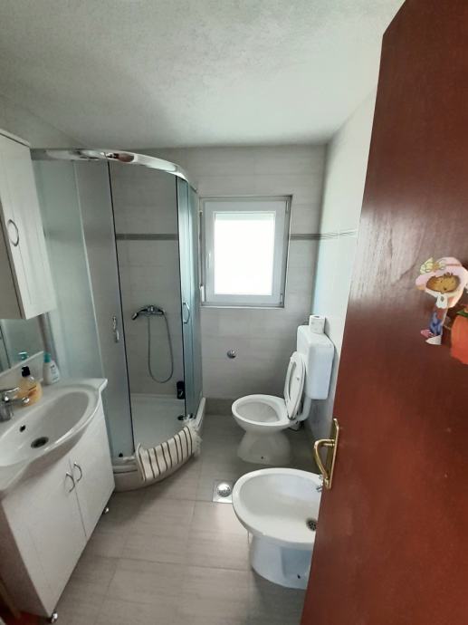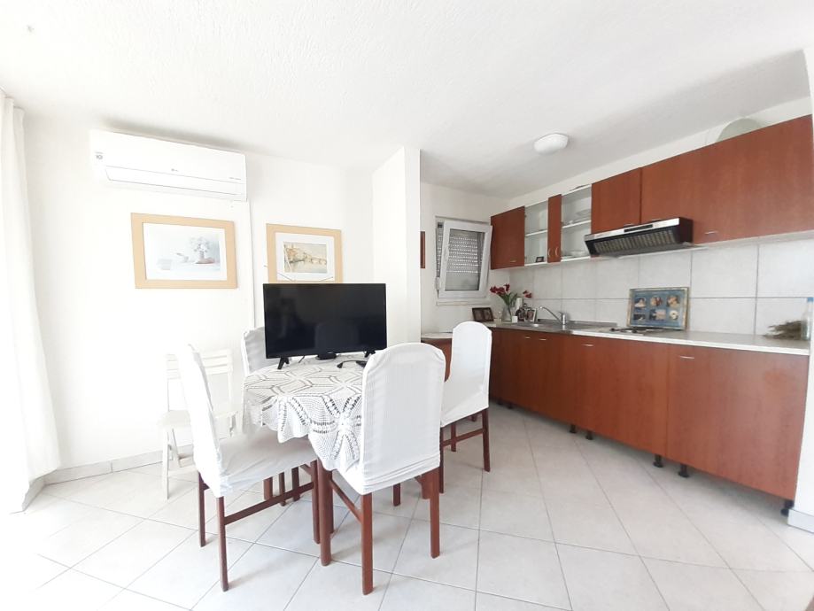 Na katu se nalazi kuhinja i dnevni boravak sa prekrasnim pogledom na more i izlazom na terasu, dvije sobe te kupaonica.