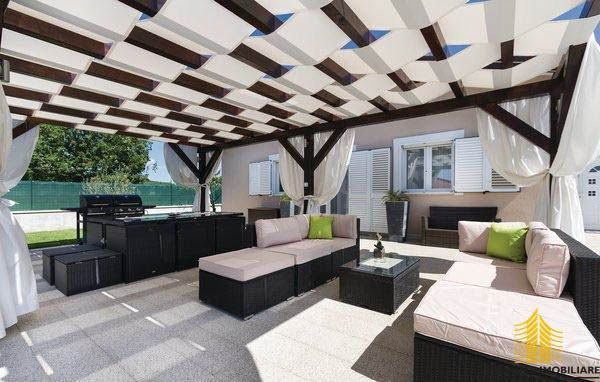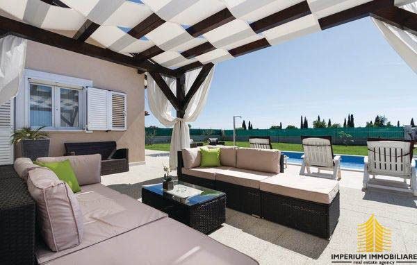 Kuća se sastoji od open space prostora koji objedinjuje dnevni boravak, kuhinju i blagovaonicu iz koje se pristupa direktno na vanjsku natkrivenu terasu i bazen (32 m2) uz dvije spavaće sobe i kupaonicu.