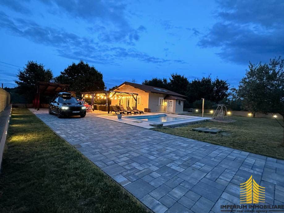 Udaljena svega 1.5 km od mora te 5 km od centra grada Rovinja, prodaje se prekrasna prizemnica (118 m2) s okućnicom (100 m2) na mirnoj lokaciji okružena zelenilom gdje su prve trgovine i restorani udaljeni 1 km.