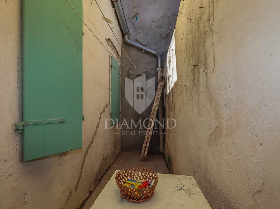 Ova kuća kao jedna u nizu Rovinjske staro gradnje zauzima 86m2 tlocrtno dok sa prvim katom i potkrovljem ima oko 200m2. U prizemlju kuće nalazi se prostor koji se koristio kao spremište. Na prvom katu kuće nalazi se funkcionalni stan sa kuhinjom i blagovaonicom, dnevnim boravkom, kupaonicom i dvije spavaće sobe od kojih jedna ima izlaz na otvorenu terasu. Potkrovlje ove kuće je potrebno je adaptirati kako bi se dobili dodatni kvadrati stambenog prostora.