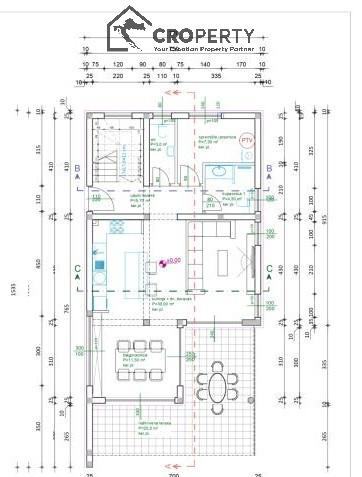 - Kuhinja s blagovaonicom i dnevnim boravkom s izlazom na natkrivenu terasu