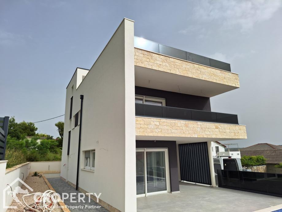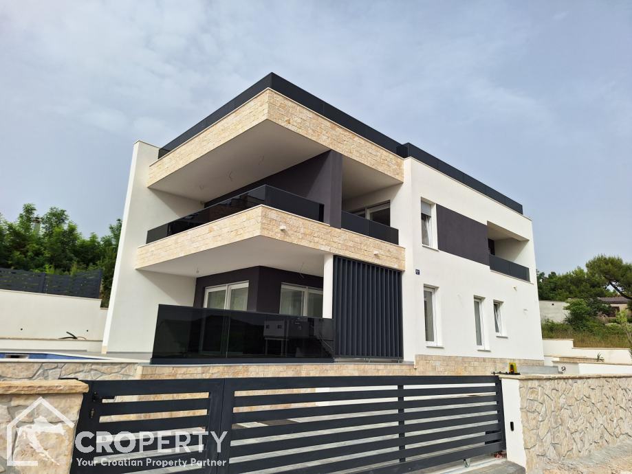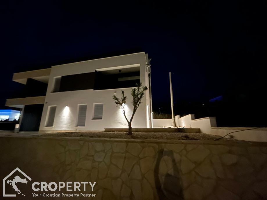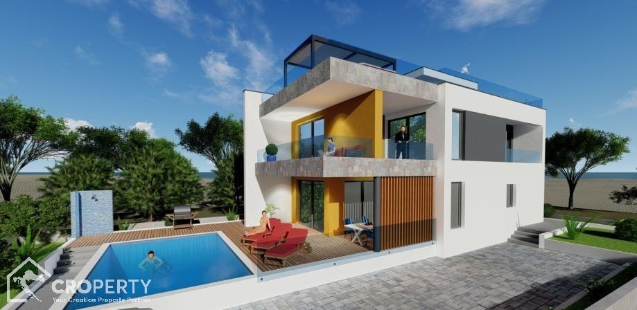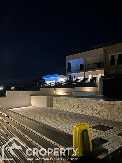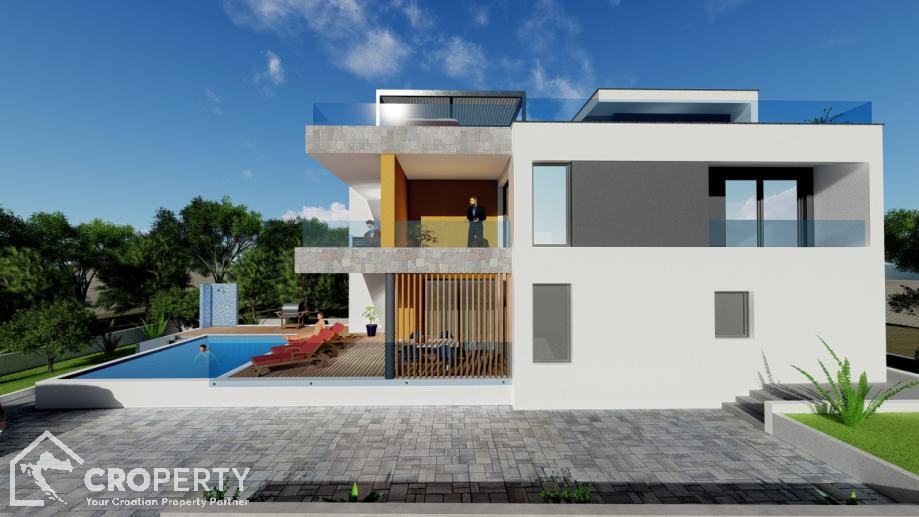 Prodaje se luksuzna vila s bazenom i panoramskim pogledom na more, udaljena samo 250 metara od mora i plaže – idealna za život, odmor ili turističko iznajmljivanje!