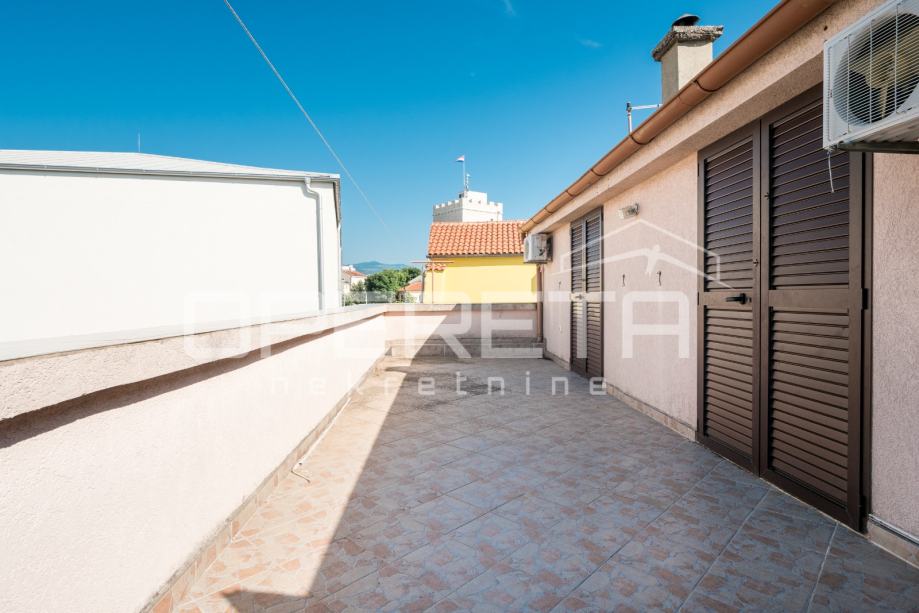 Drugi kat nudi prostranu otvorenu terasu površine 27 m², uz koju se nalaze dva slična prostora, svaki sa sobom, kupaonicom i spremištem.