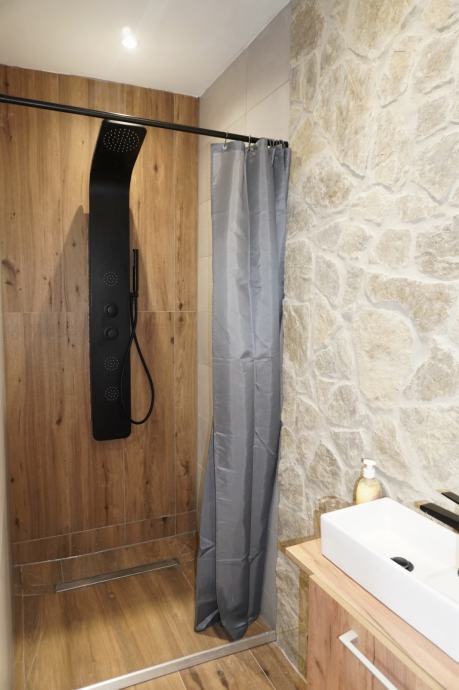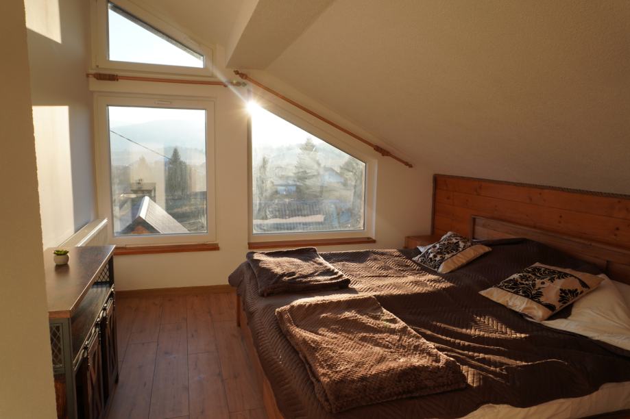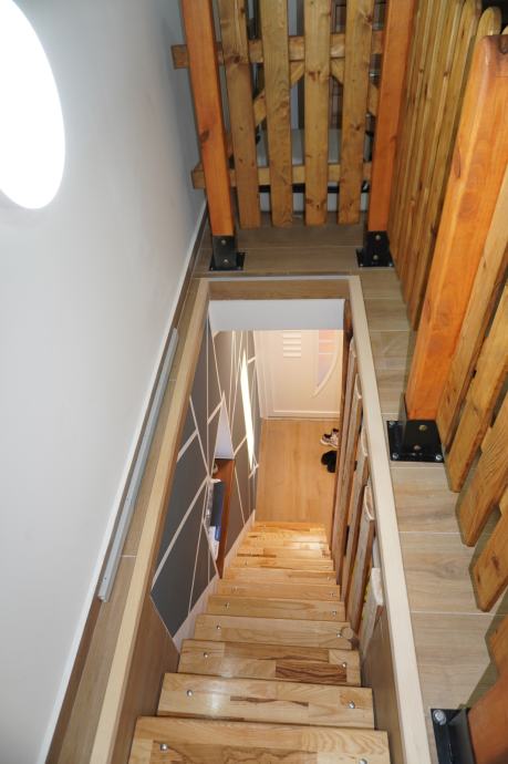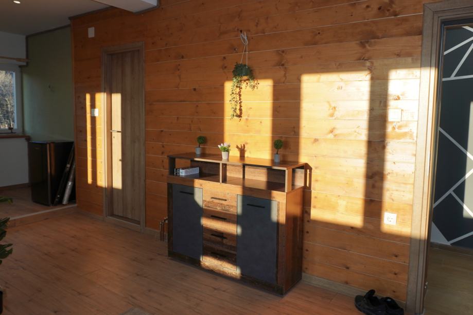 U suterenskom dijelu nalazi se prostrana kuhinja, velika blagovaonica i WC, a cijeli prostor je potpuno namješten i opremljen rustikalnim namještajem izrađenim od starog hrasta. Na prvoj etaži smješteni su veliki dnevni boravak, spavaća soba te kupaonica. Visoko potkrovlje kuće obuhvaća dvije velike spavaće sobe, kupaonicu te dodatni prostor koji je namjenski uređen kao spremište.