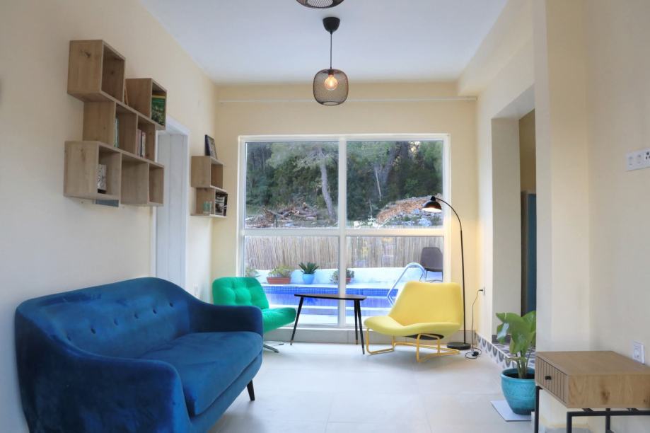 Unutrašnjost kuće pažljivo je osmišljena kako bi pružila maksimalnu udobnost. Sastoji se od četiri pspavaće sobe, kupaonice, te kuhinje koja je diskretno odvojena od dnevnog boravka, čime se postiže sklad između funkcionalnosti i otvorenog prostora. Dnevni boravak odiše svjetlošću i pruža lijep pogled na bazen, stvarajući osjećaj povezanosti s vanjskim prostorom.