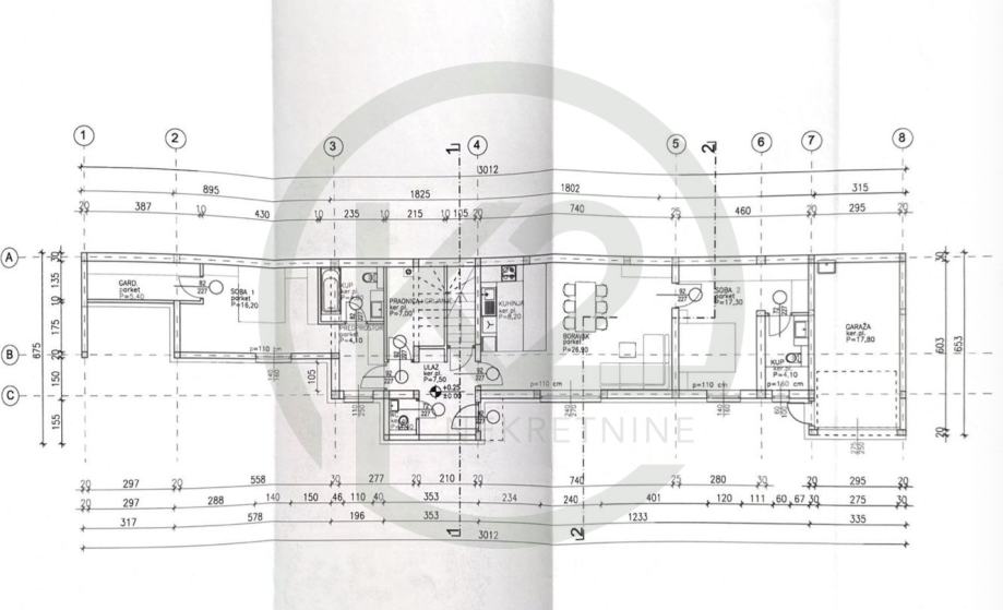 Uz kuću je smještena i garaža površine 17,80 m2.