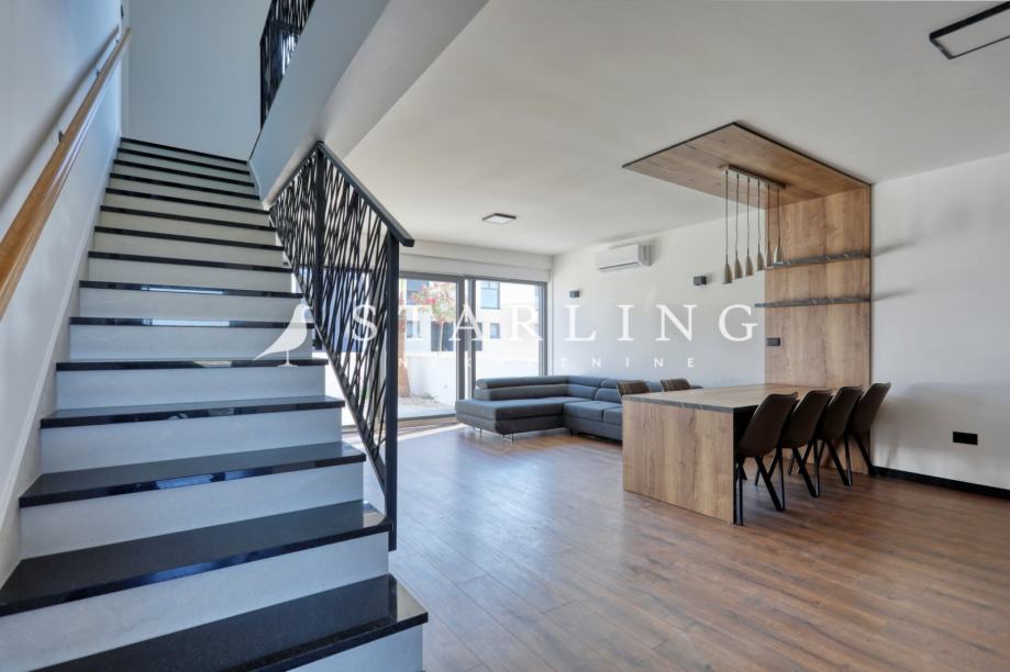 Kuća se sastoji od prizemlja s vrtom, prvog kata te dva vanjska parkirna mjesta što je u naravi 110m2.