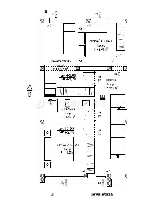 - KATA: 3 spavaće sobe, kupaonica s wc-om, hodnik